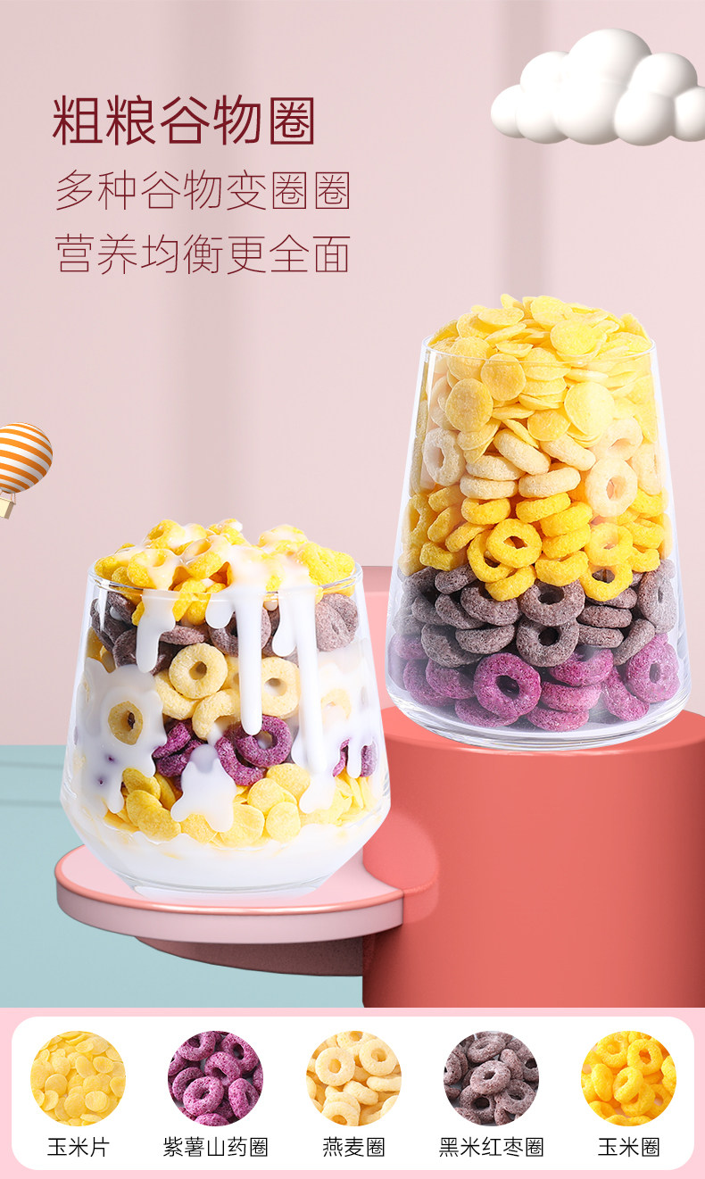 Cereal Rings Low-Fat O0 Fat-Free Saccharin-Free Non-Reduced Ready-To-Eat Corn Oatmeal Rings Cereal Fat Crispy Breakfast Meal Replacement Food