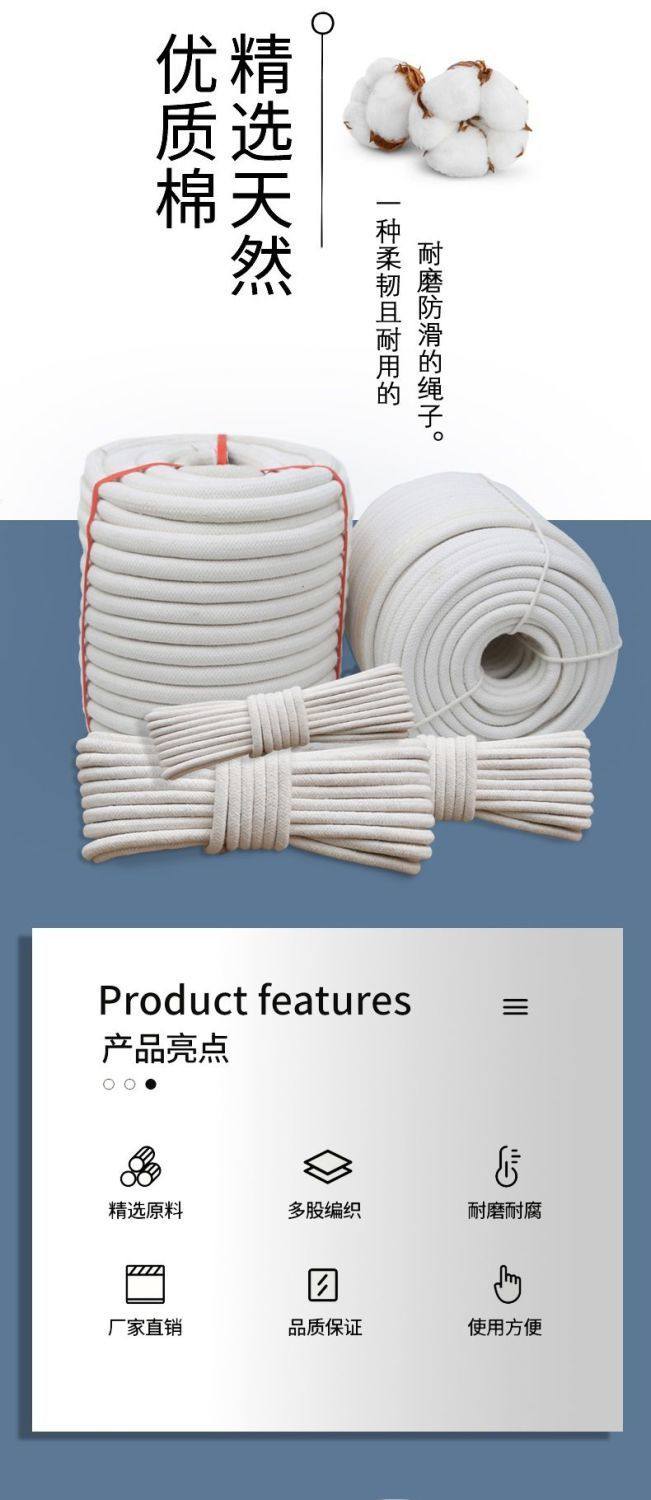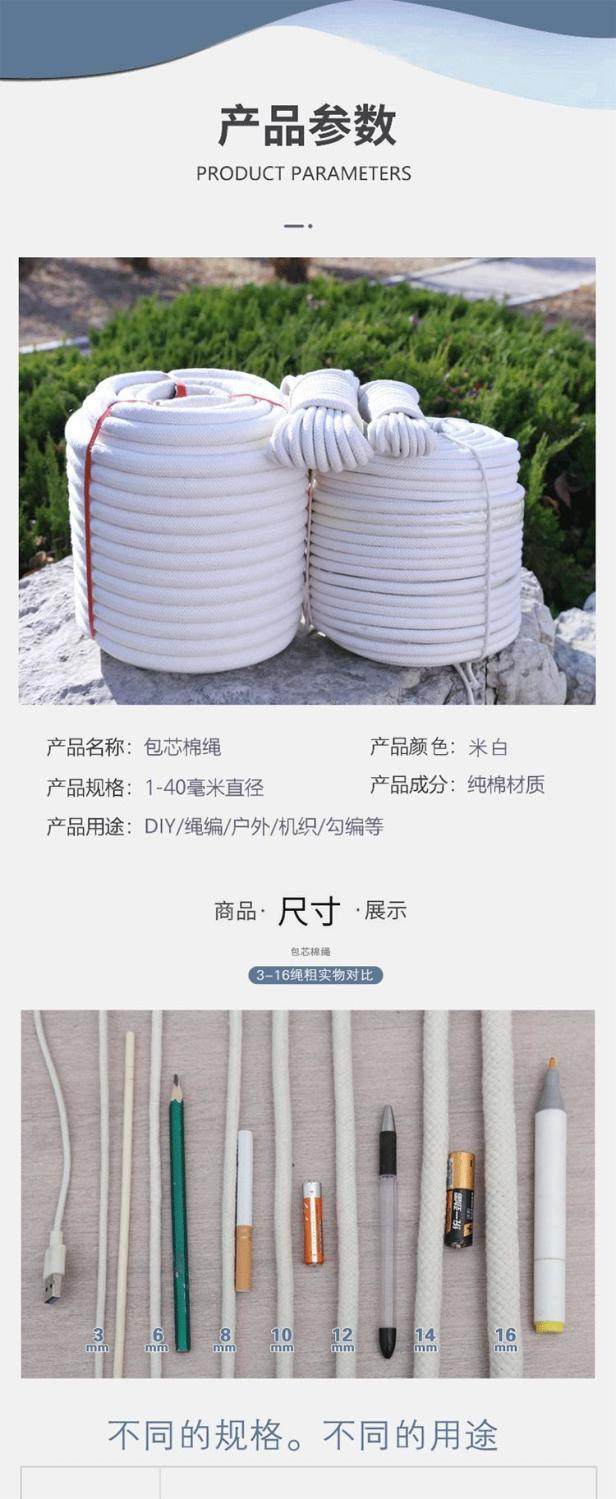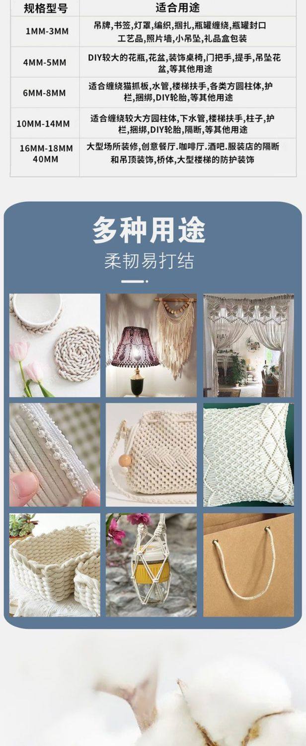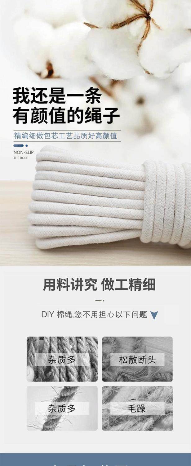 Cotton Rope Core-Spun Cotton Thread Rope Weaving Rope Handmade DIY Material Tapestry Thick and Thin Rope Decorative Rope Tag Rope Carrying Rope