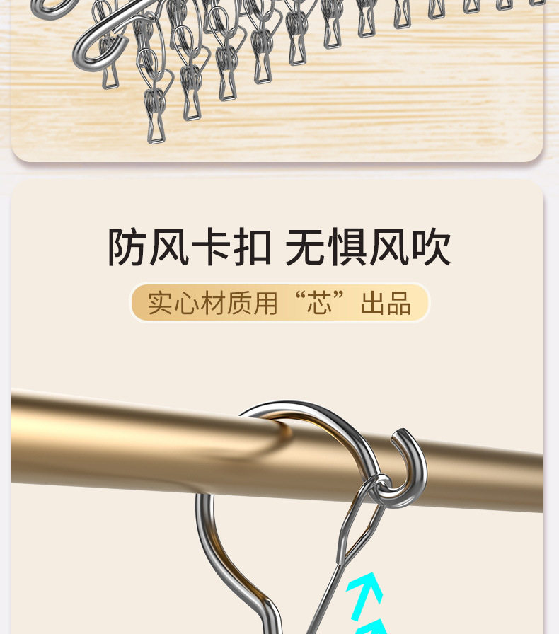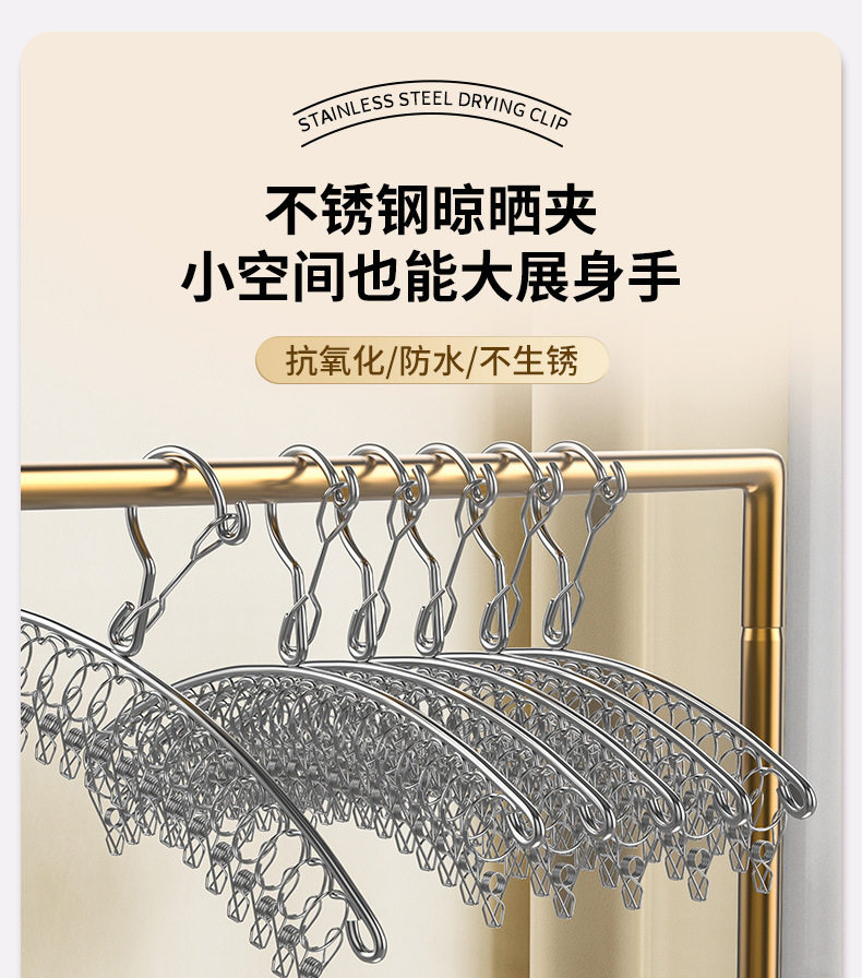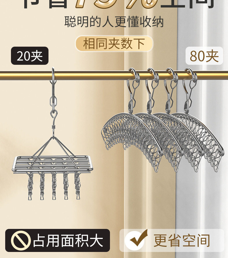 Square Sock Clip Stainless Steel Hanger Clip Style for Drying Socks, Household Multi-Head Clothes Hanger 20/40/60