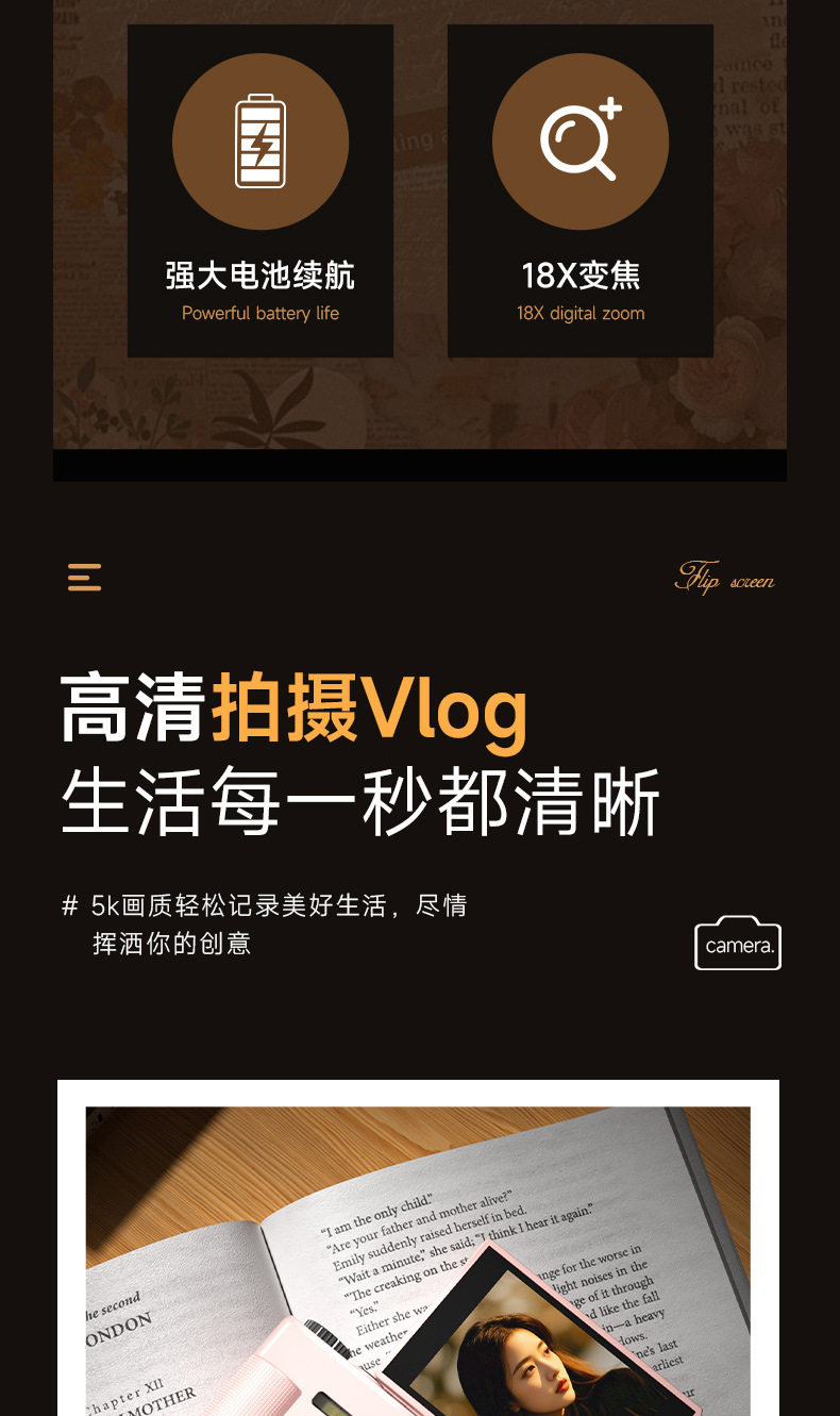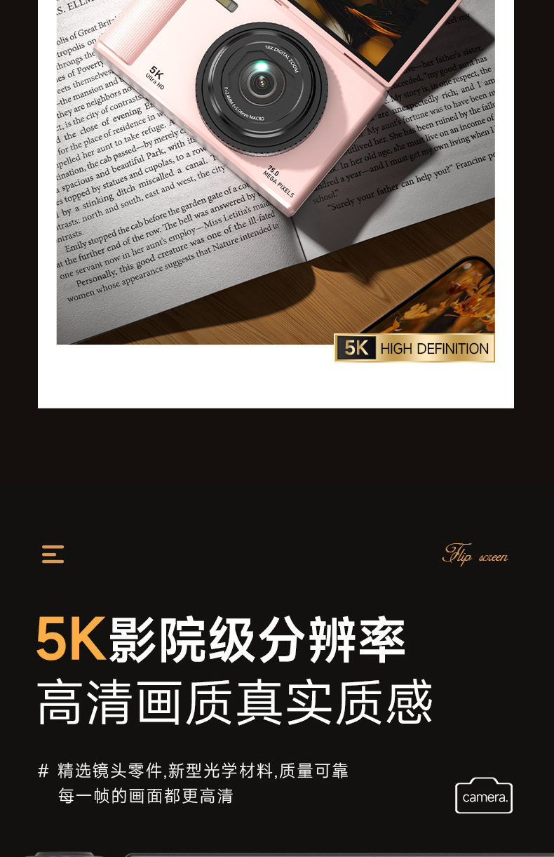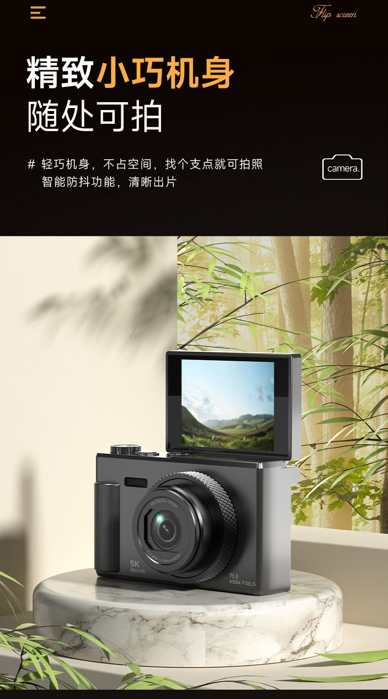 [Source Factory] Cross-Border Export Retro 5K Mirrorless Digital Camera Flip Screen Student Selfie Ccd Camera