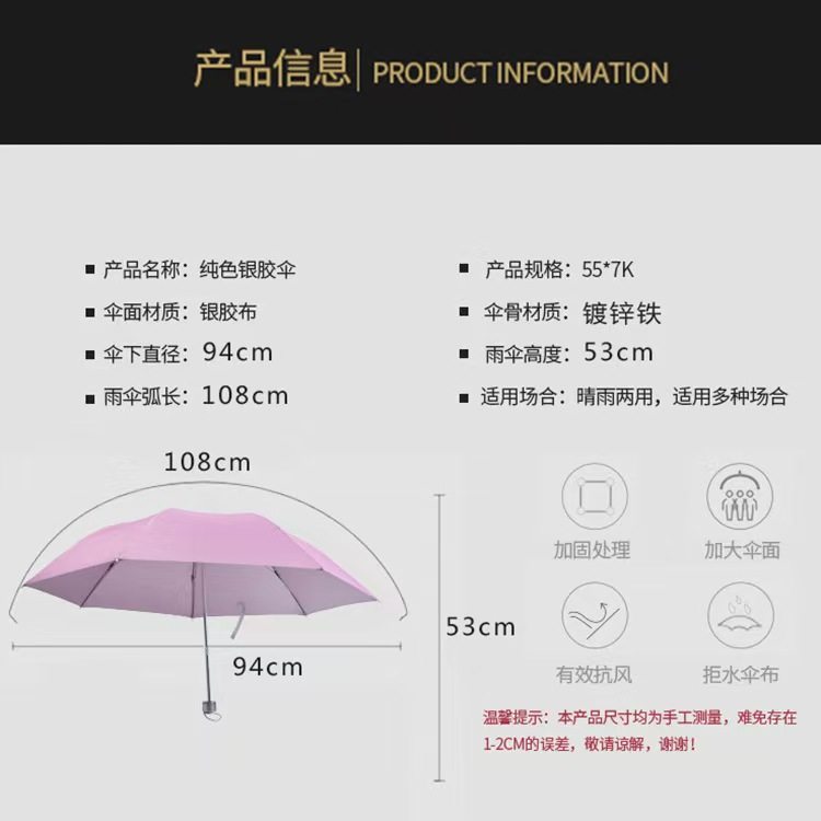 Umbrella Wholesale, Dual-Use for Sun and Rain, Creative Sun Umbrella, Silver-Coated Umbrella, Manual Gift Customization, Rainproof Advertising Umbrella