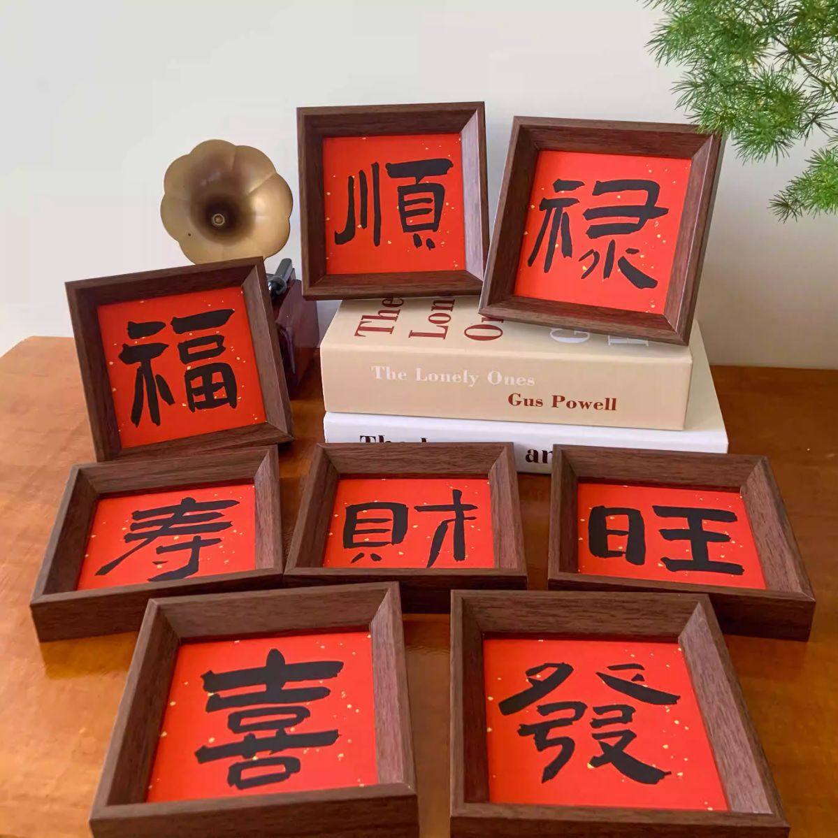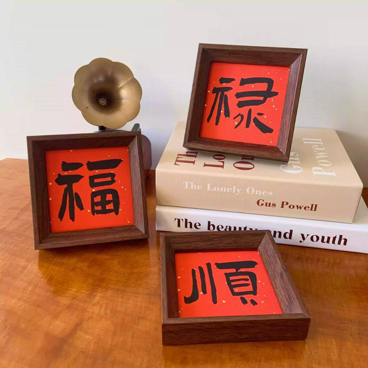 New Chinese Style Festive Calligraphy Photo Frame Painting Desktop Ornaments Fulu Shou Table Living Room Home Decoration Gifts