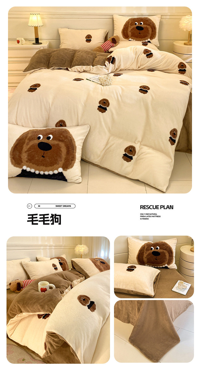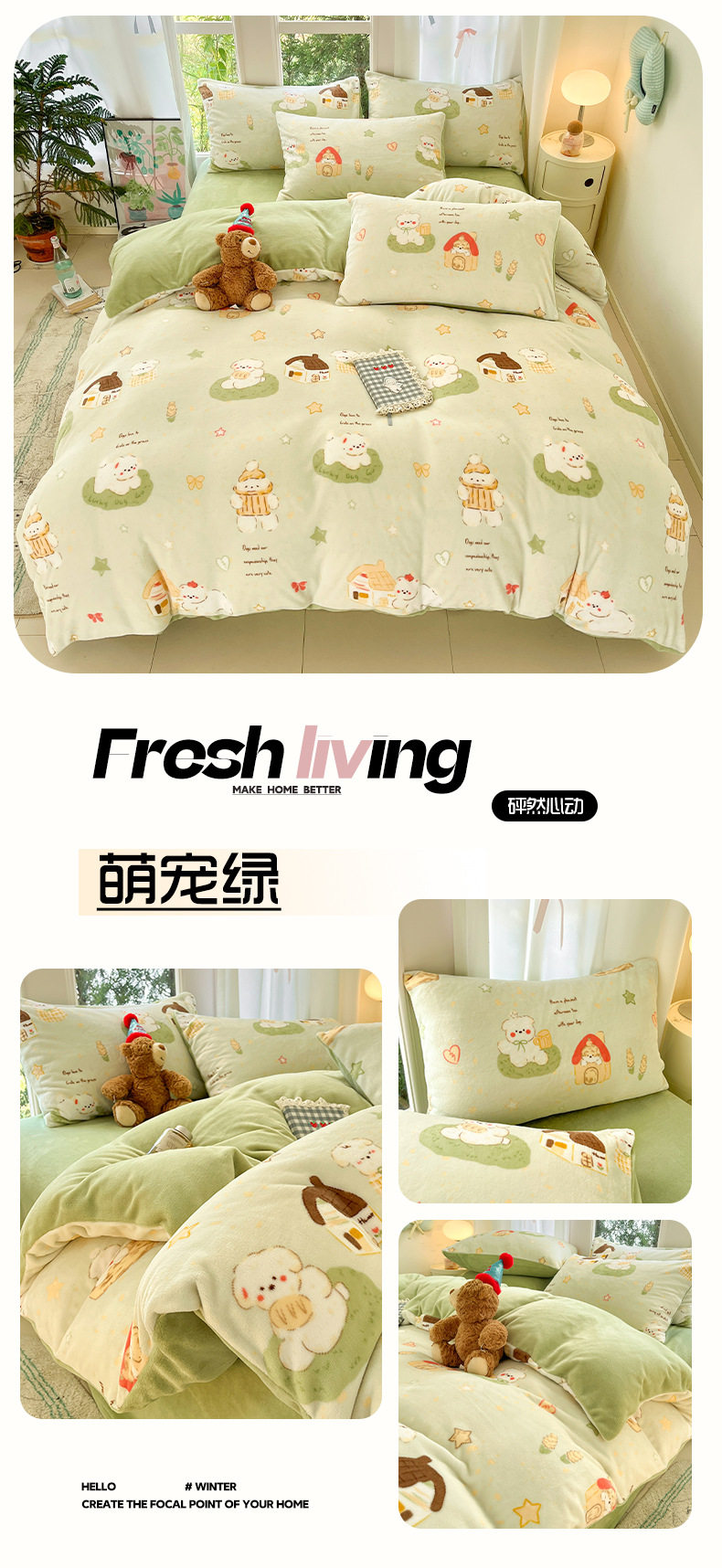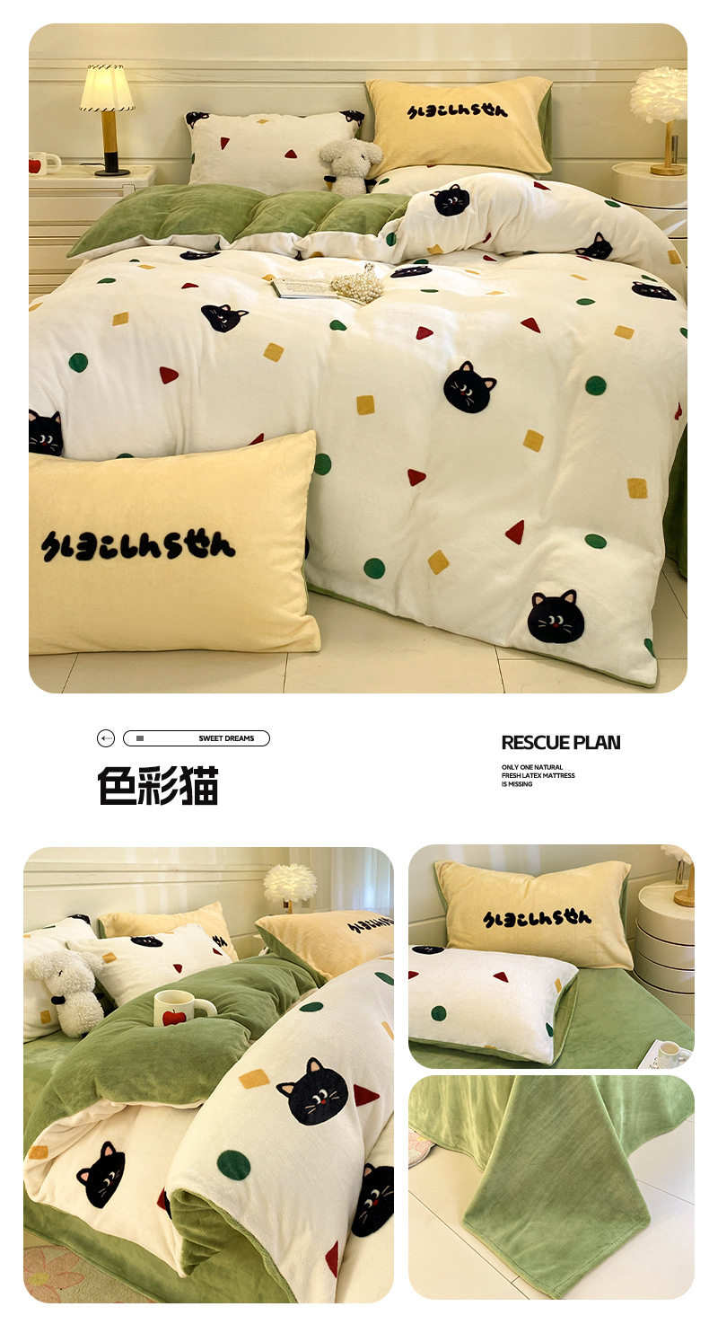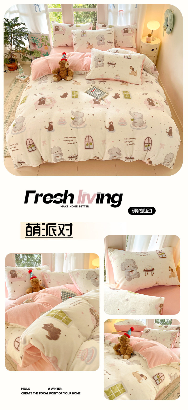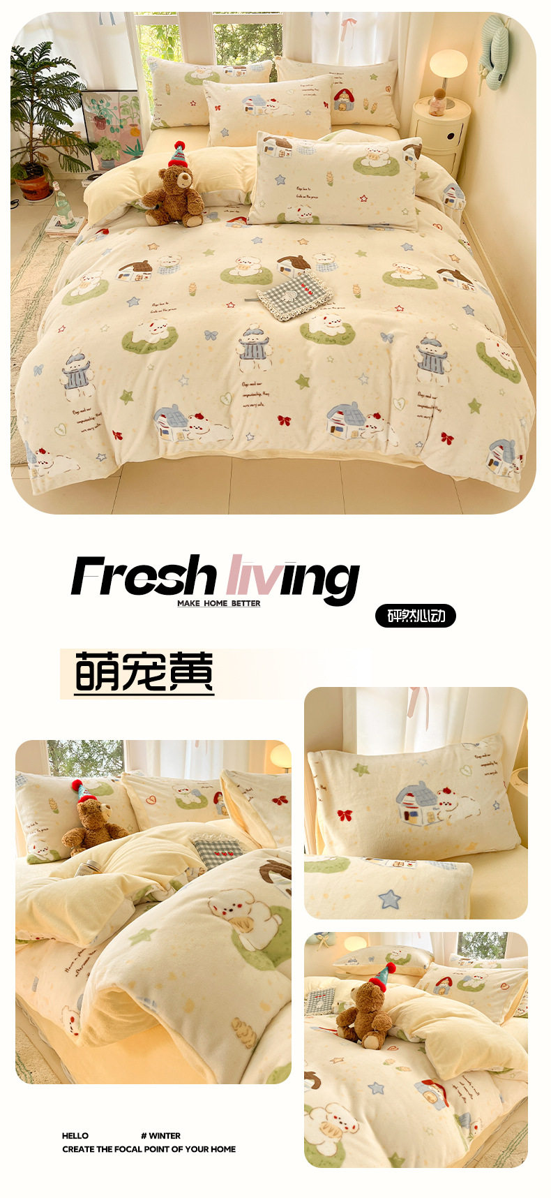 Category a Maternal and Infant Grade Thickeneded Milk Velvet Four-Piece Set Cute Cartoon Coral Velvet Three-Piece Set Winter Warm Velvet Quilt Cover
