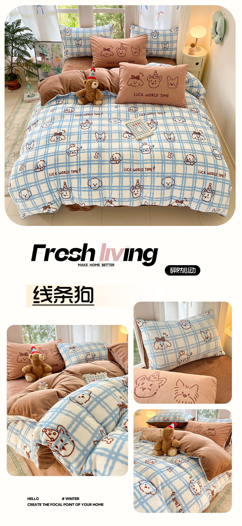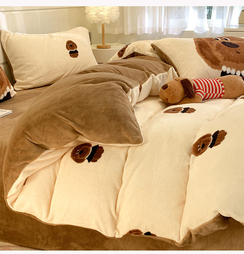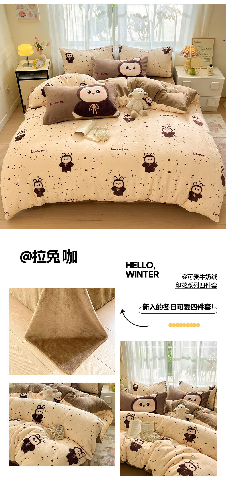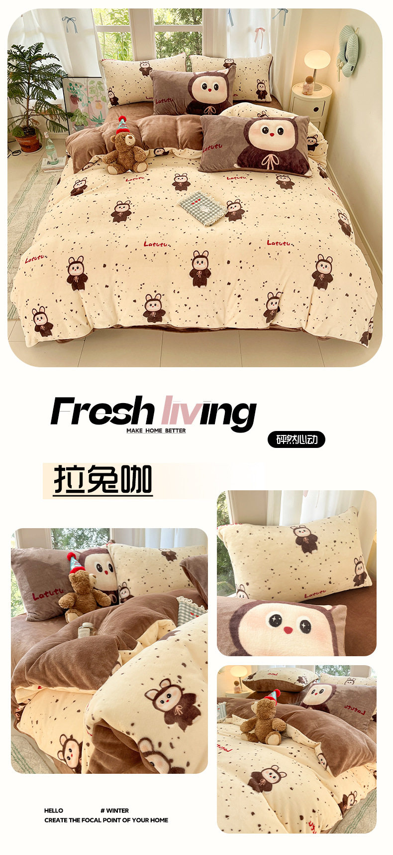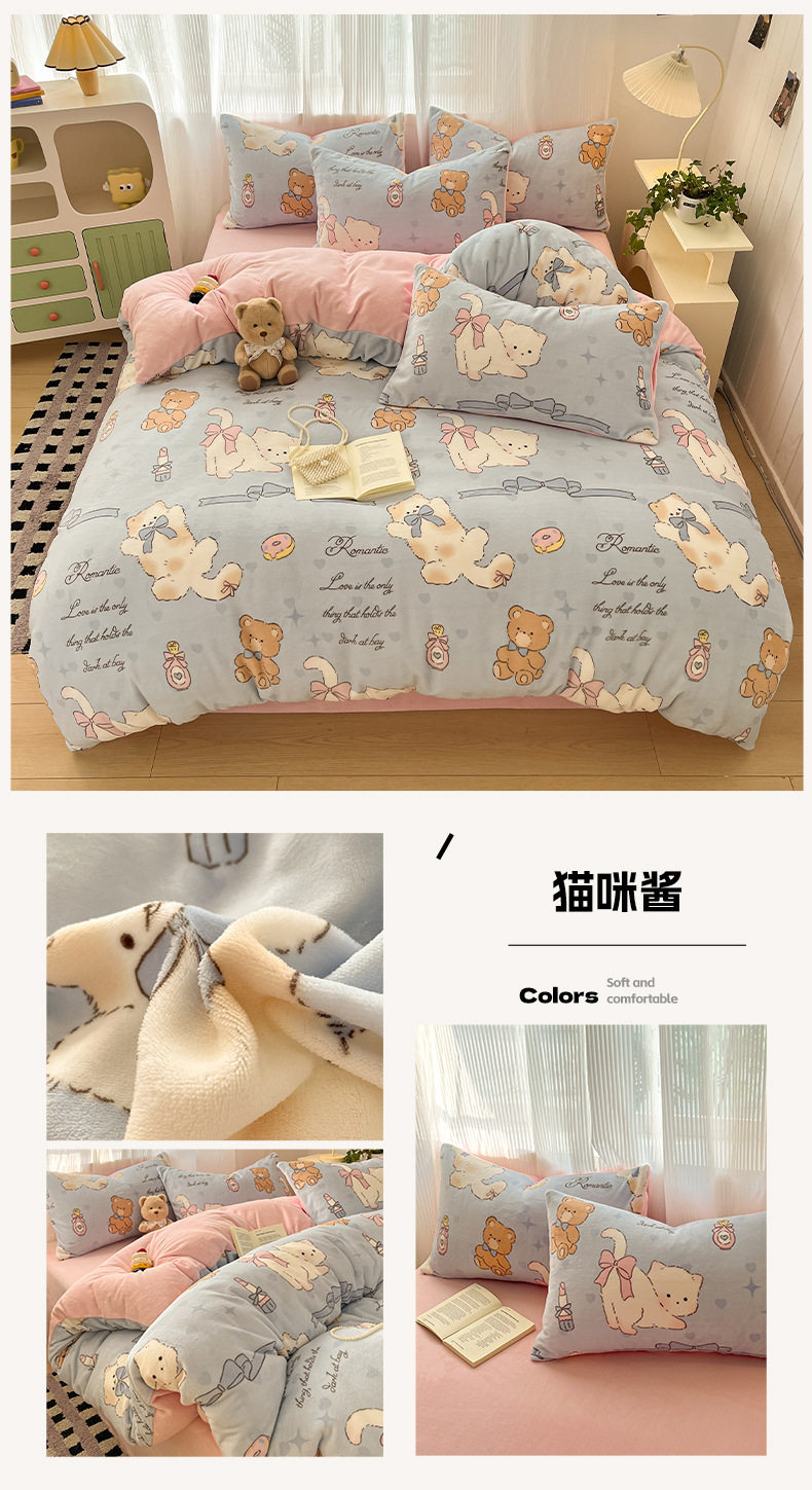 Category a Maternal and Infant Grade Thickeneded Milk Velvet Four-Piece Set Cute Cartoon Coral Velvet Three-Piece Set Winter Warm Velvet Quilt Cover