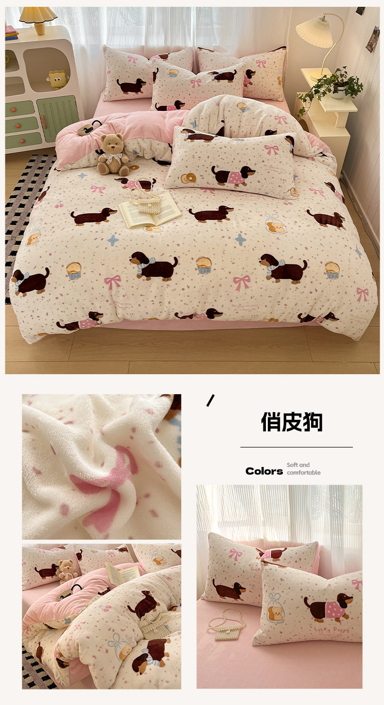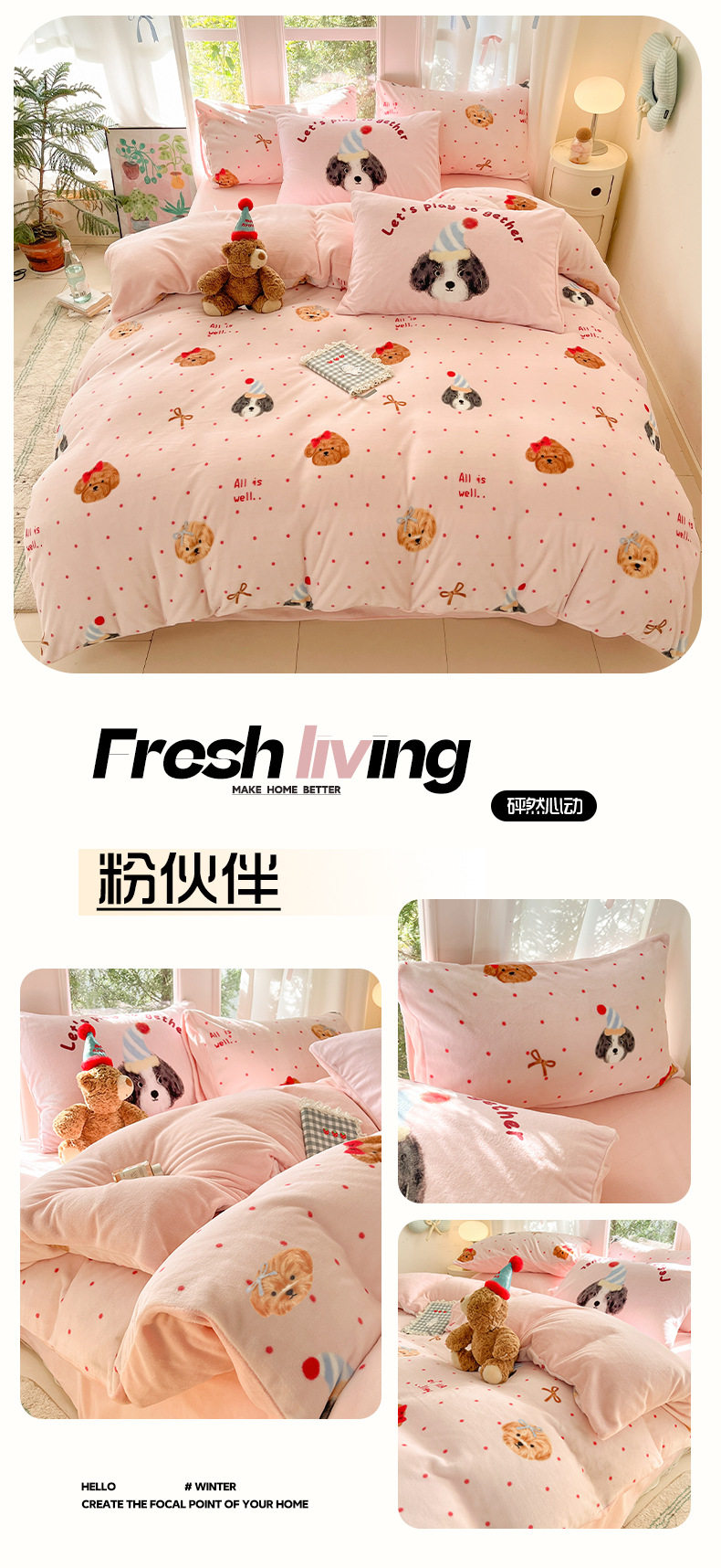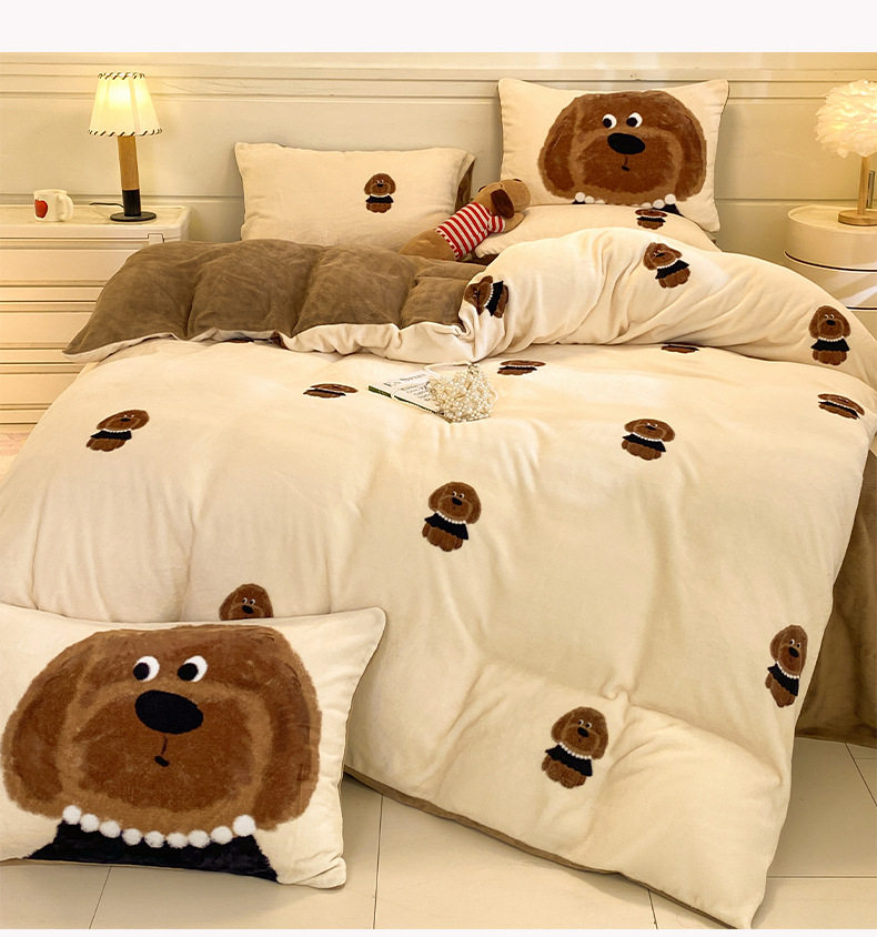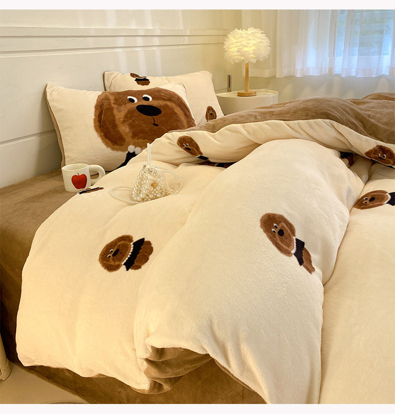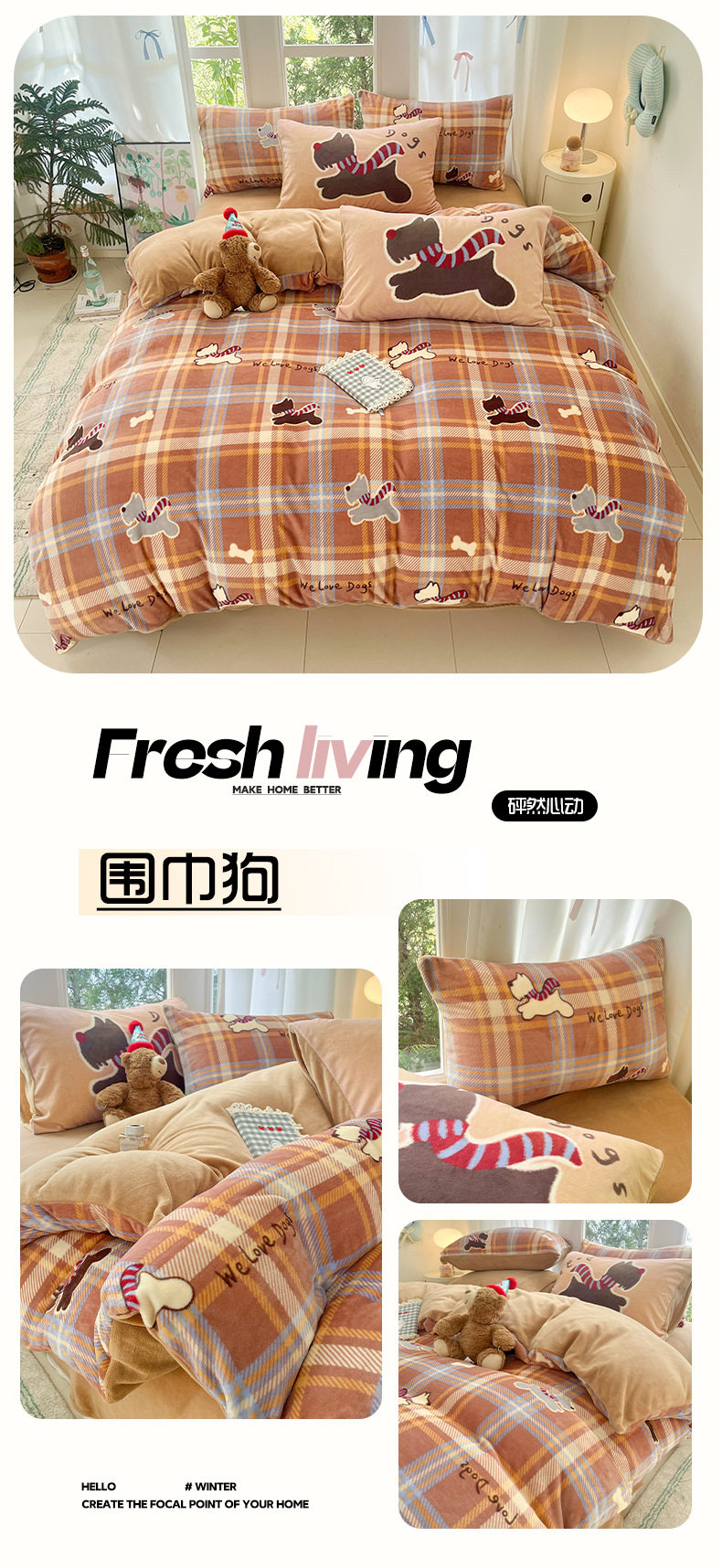 Category a Maternal and Infant Grade Thickeneded Milk Velvet Four-Piece Set Cute Cartoon Coral Velvet Three-Piece Set Winter Warm Velvet Quilt Cover