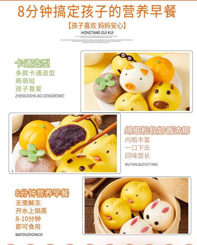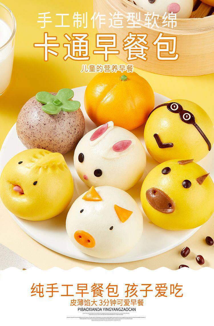 Cartoon Buns, Steamed Buns, Pastry Frozen Breakfast Packs, Cute Custard, Bean Paste, Purple Sweet Potato Filling, Animal-Shaped Pig Buns, Amazon