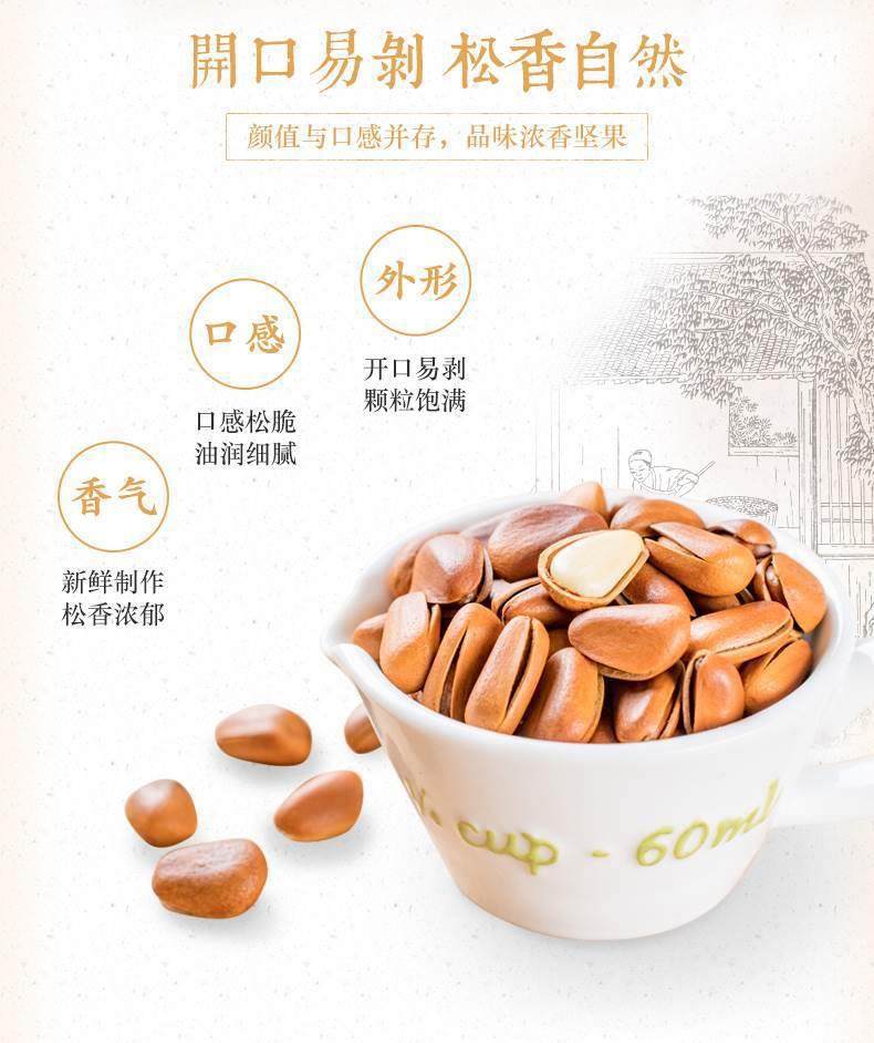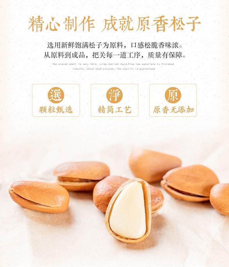 | Packaging specifications | 250g of open pine nuts [large particles] 1 can in total,500g of open pine nuts [large particles] 2 cans in total,750g of open pine nuts [large particles] 3 cans in total,1000g of open pine nuts [large particles] 4 cans in total,50g pine nuts [without shell],100g pine nuts [without shell],250g pine nuts [without shell],5 pine nuts [tasting pack] |
