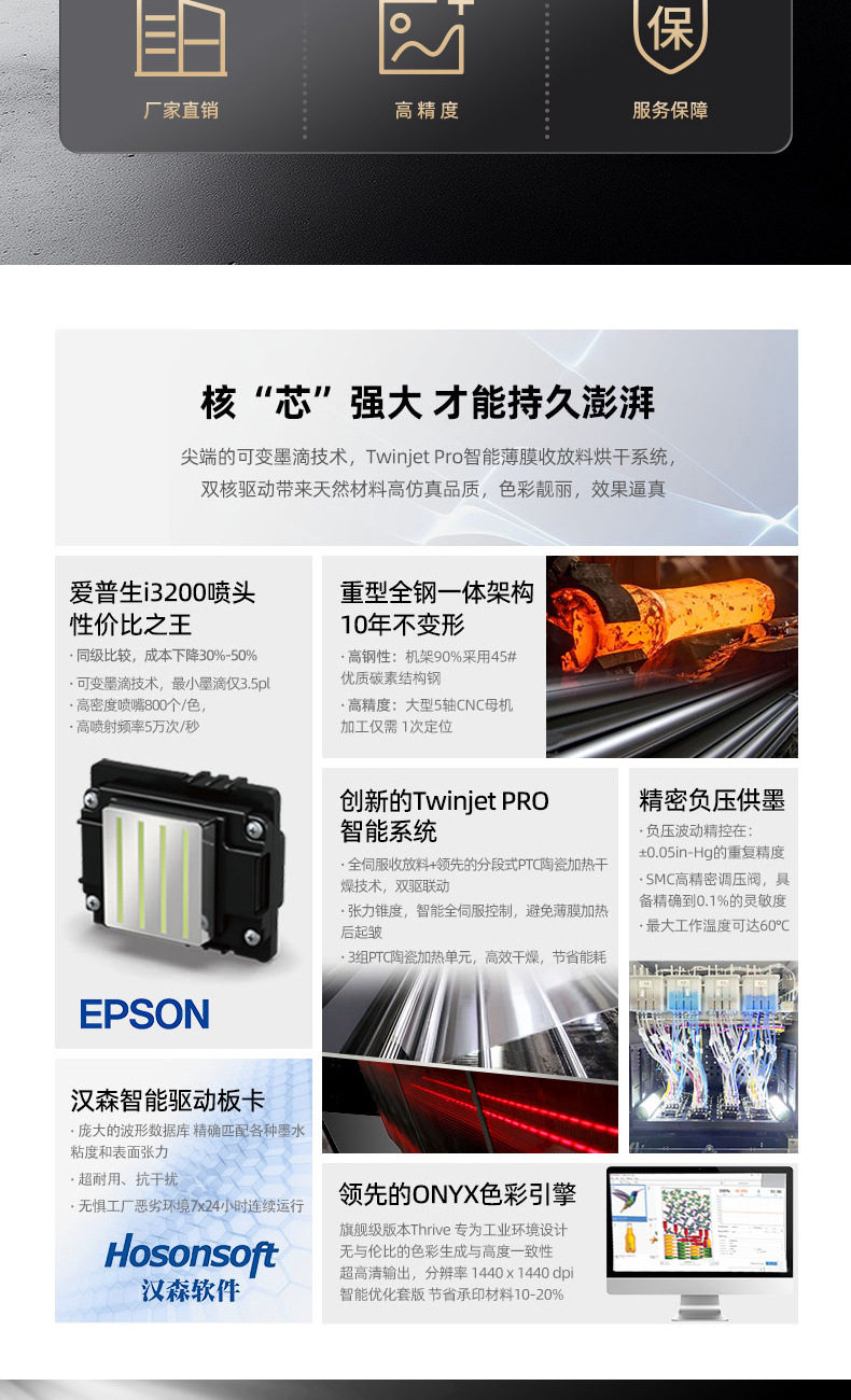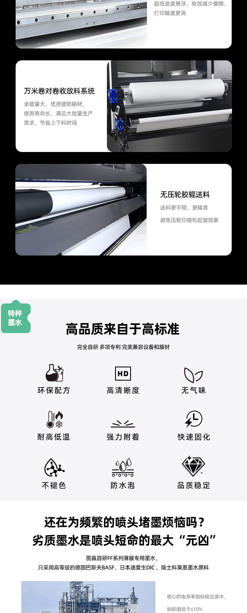 | Ink supply system | Precision negative pressure ink supply, maximum capacity 5l |