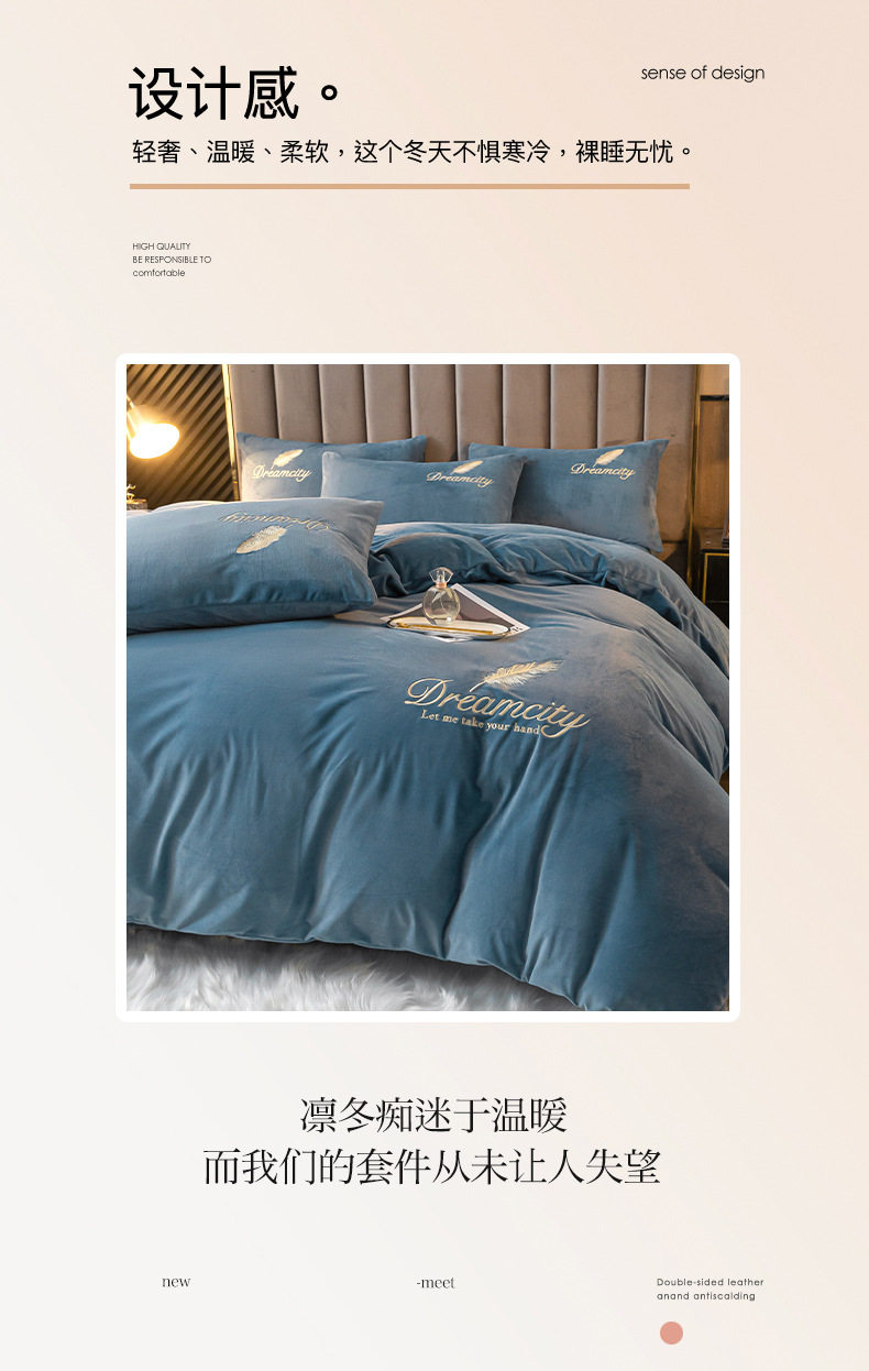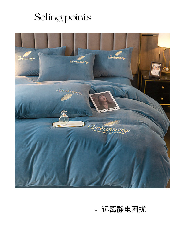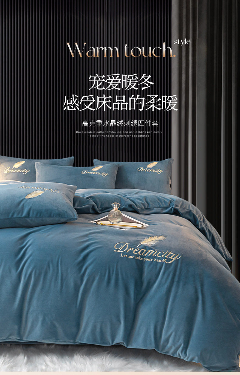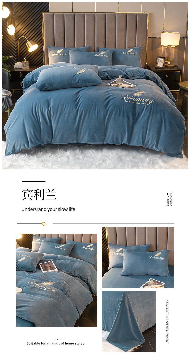 Winter Warm Crystal Velvet Four-Piece Set Milk Velvet Coral Velvet Quilt Cover Single Piece Double-Sided Fleece-Lined 1.8m Bedding