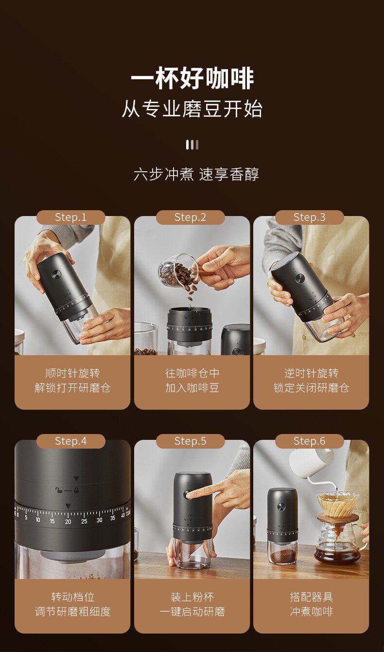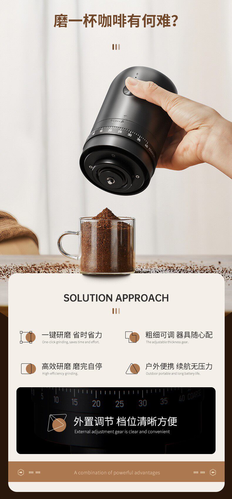 ♔ Cross-Border Rechargeable Electric Coffee Grinder with External Adjustment Settings for Home Use, Suitable for Hand Brewing