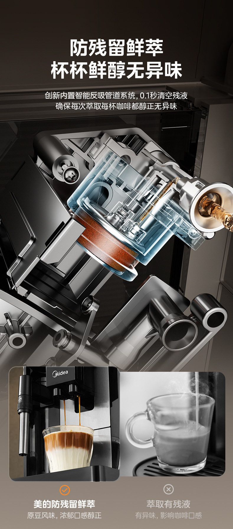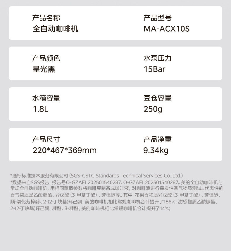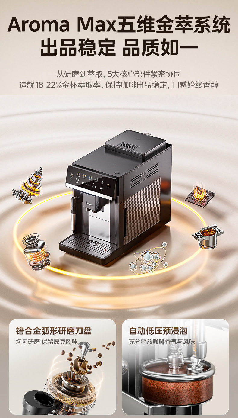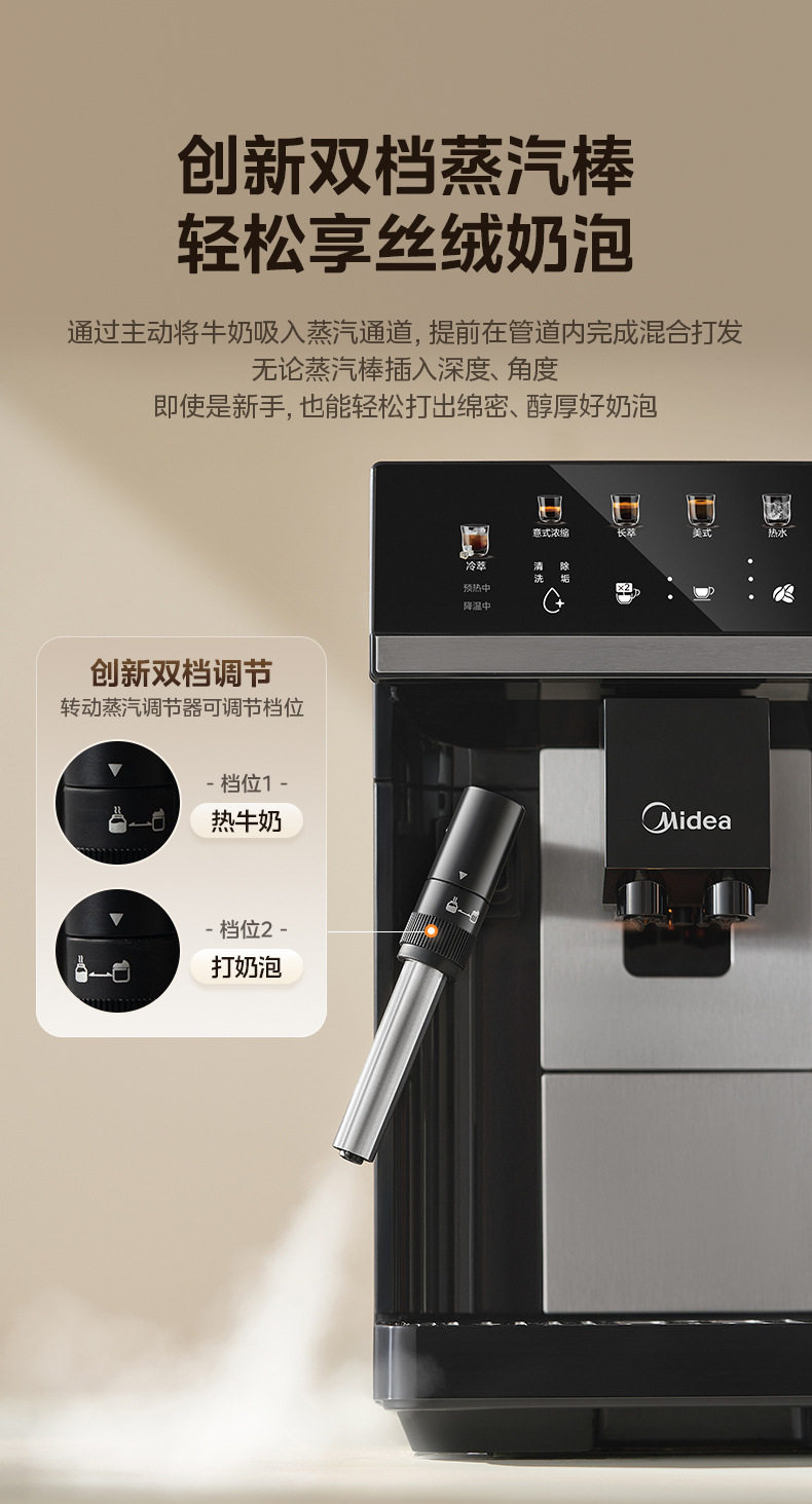 Midea/Midea Coffee Machine Fully Automatic Bean Grinder and Milk Frother Ma-Acx10S