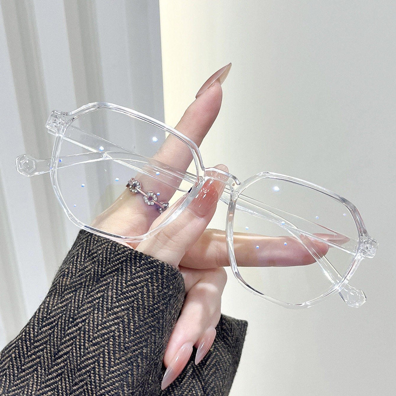 Polygonal Simple Glasses 2025 New Male and Female Student Glasses Frame Ultra-Light Plain Slimming Look Large Frame Glasses Frame