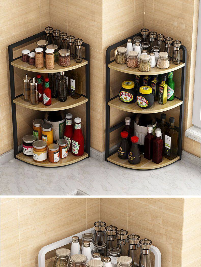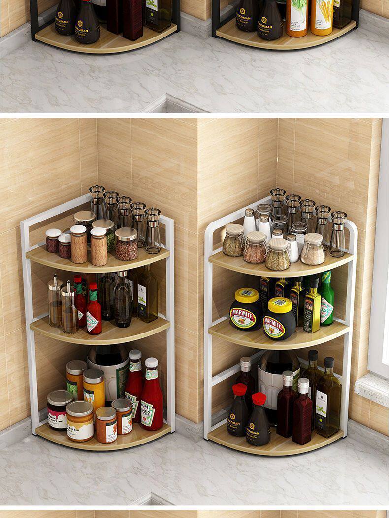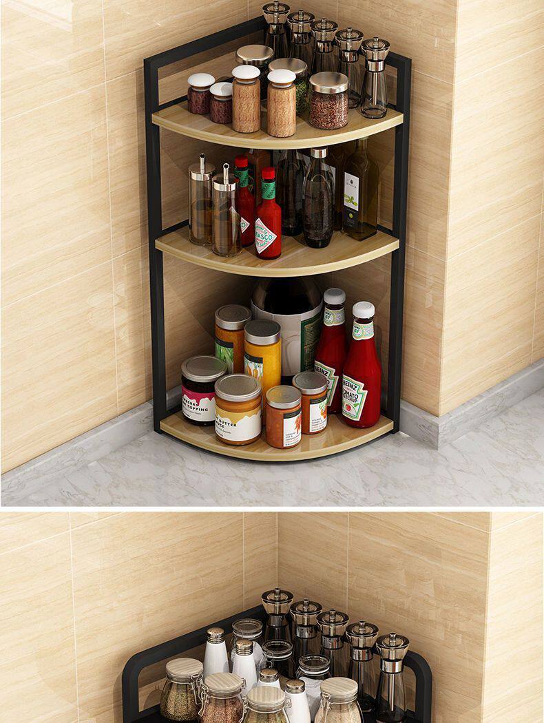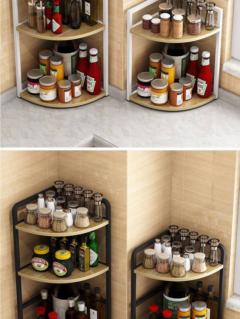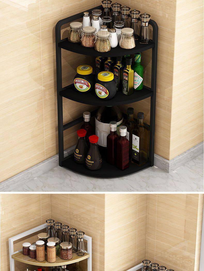 Corner Storage Rack, Spice Rack, Kitchen Supplies, Countertop Spice Rack, Stainless Steel Triangle Corner Storage Rack