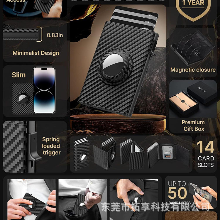 Amazon Airtag Positioning Tracker 70% off Men's Genuine Leather Carbon Fiber Card Holder Factory Wholesale Spot