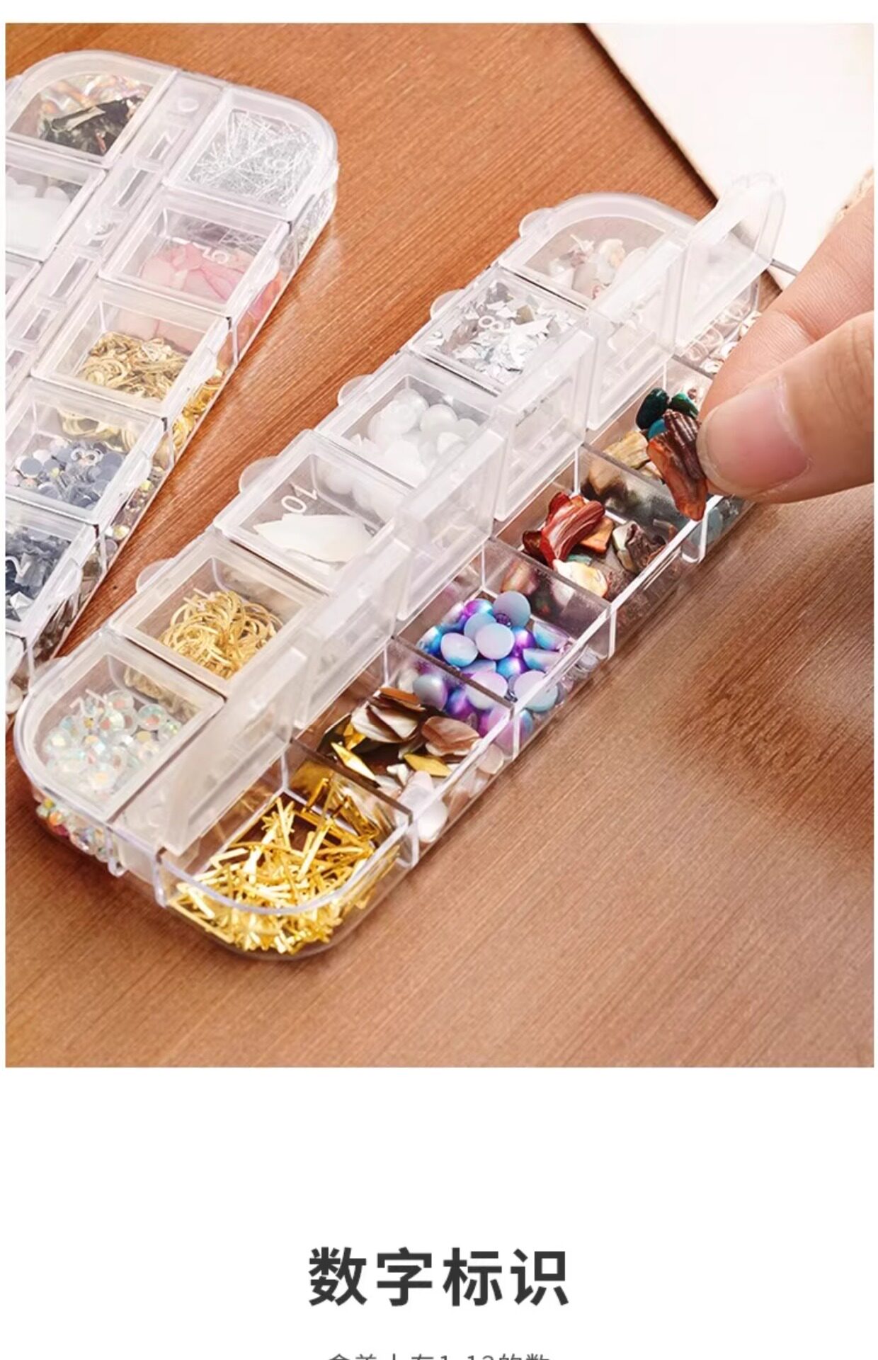 Manicure Tool Box 12-Compartment Long Box Jewelry Box Dried Flower Box Diamond Box Plastic Long Jewelry Storage Set Box