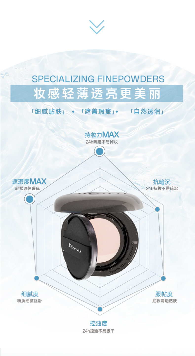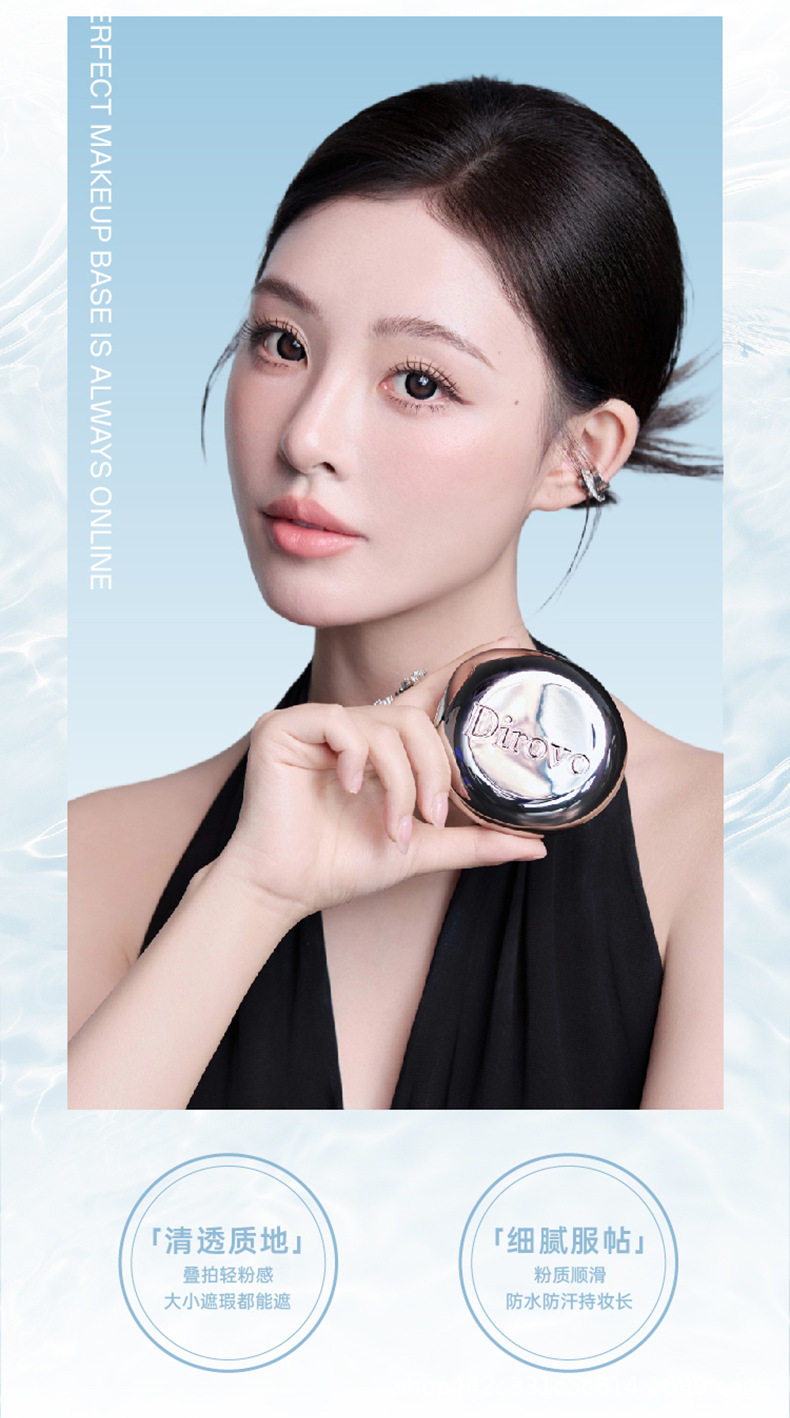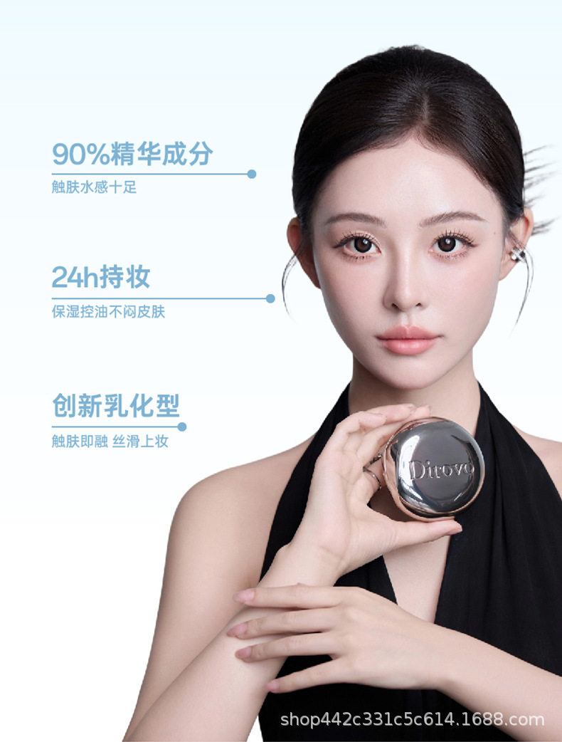 [Same Style as Ren Jialun] Dirovo Water-Glossy Powder Concealer Oil-Control Liquid Foundation Moisturizing Nude Makeup Air Cushion