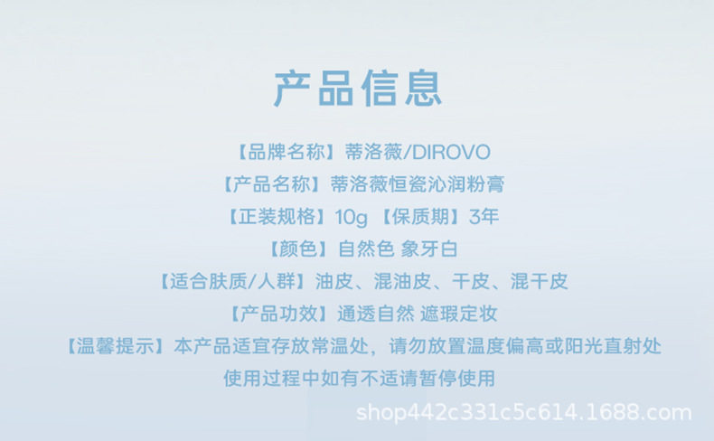| Color classification | [d01 ivory white] water glossy powder 10g scratch code,[d02 natural color] water glow powder 10g scratch code |