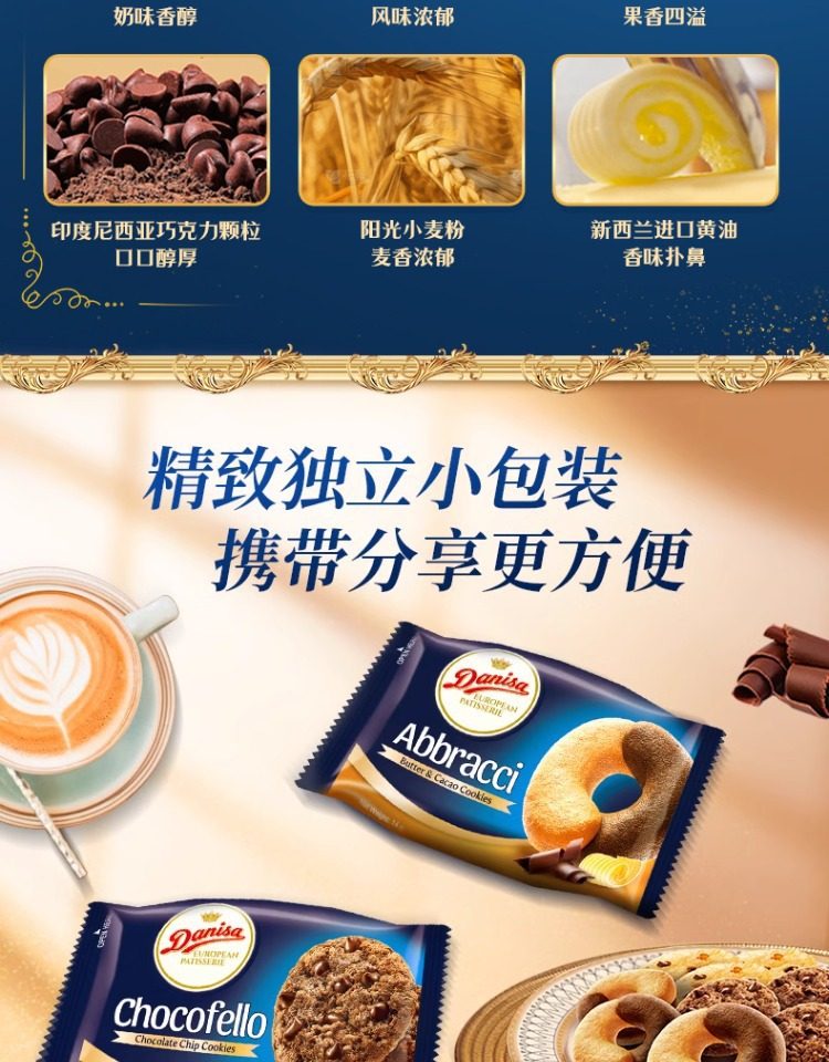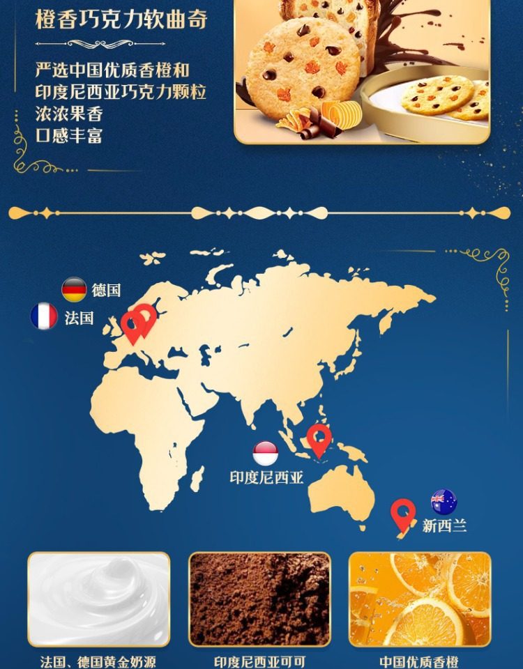 | Packaging specifications | Chocolate bean cookies 100g,Butter cocoa cookies 112g,Orange chocolate cookies 108g |