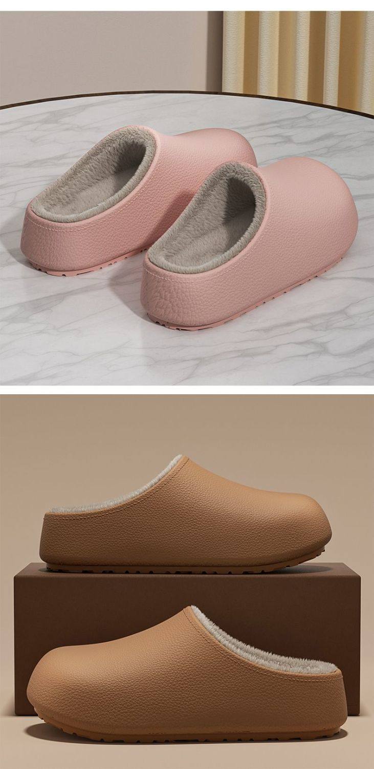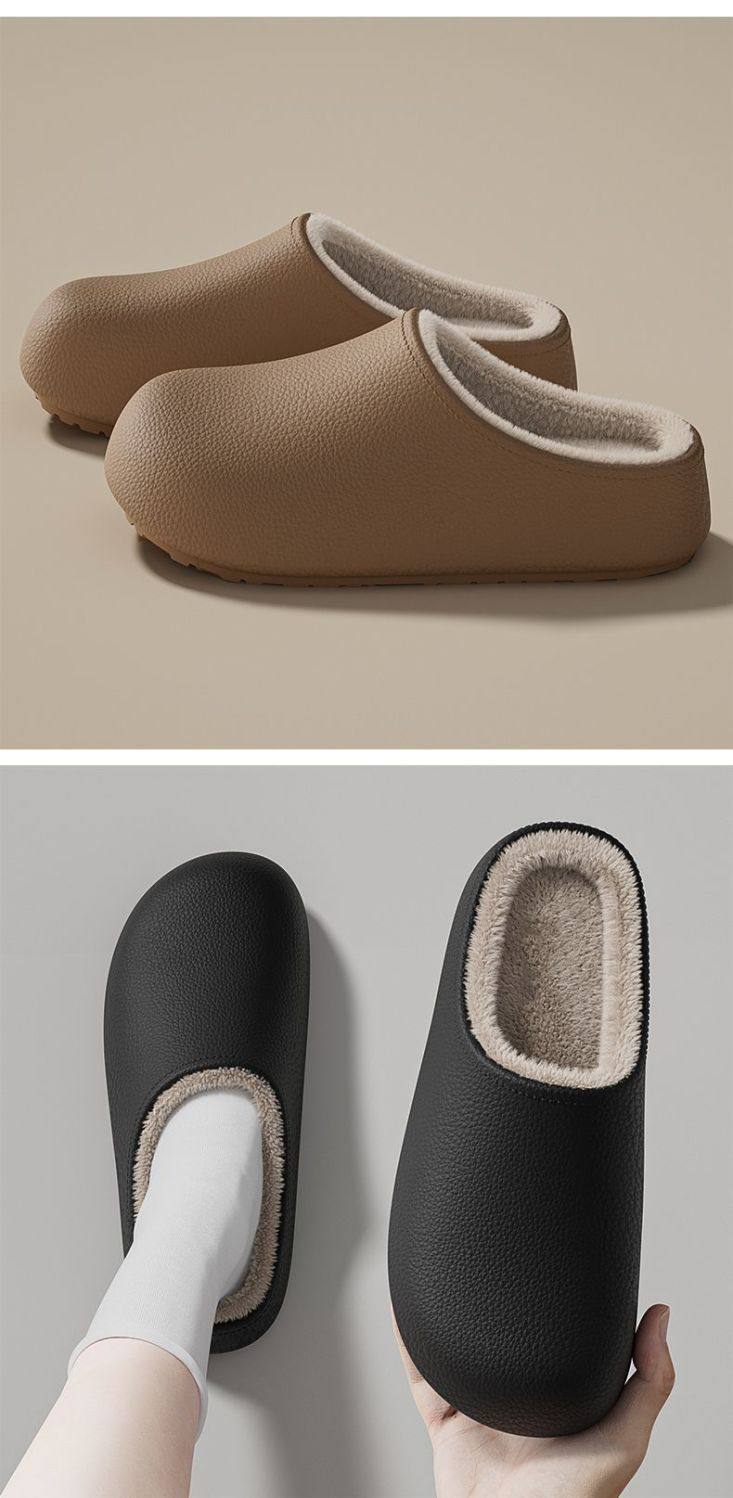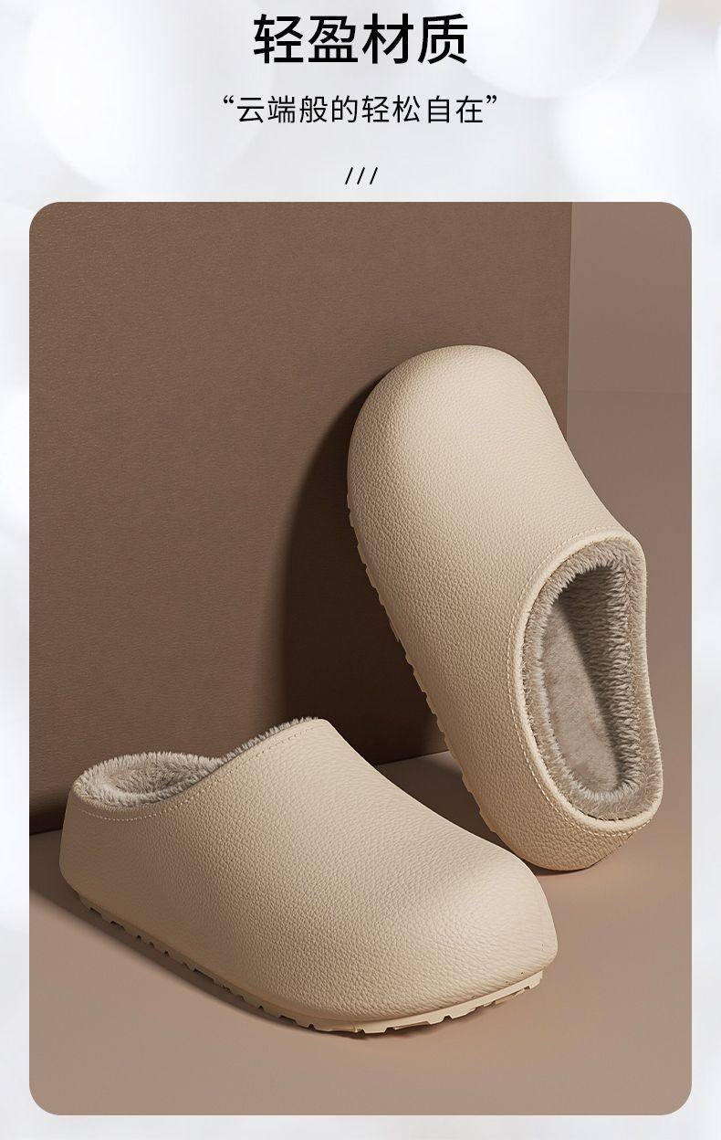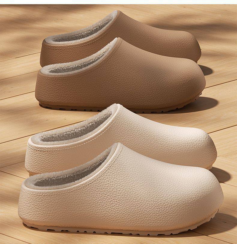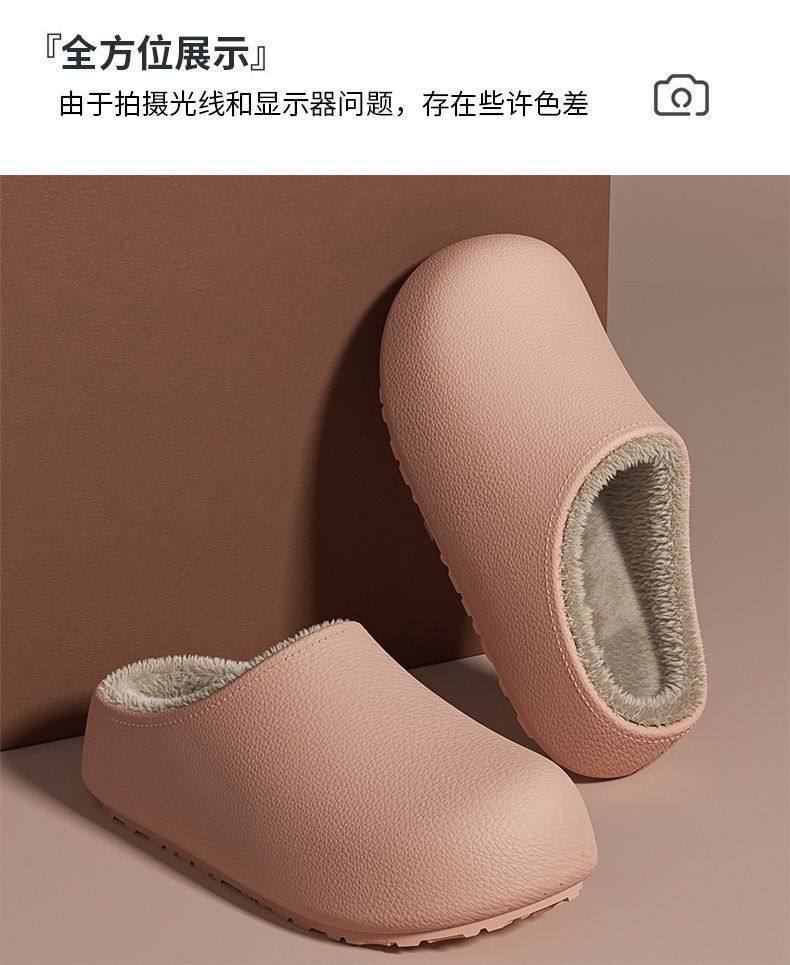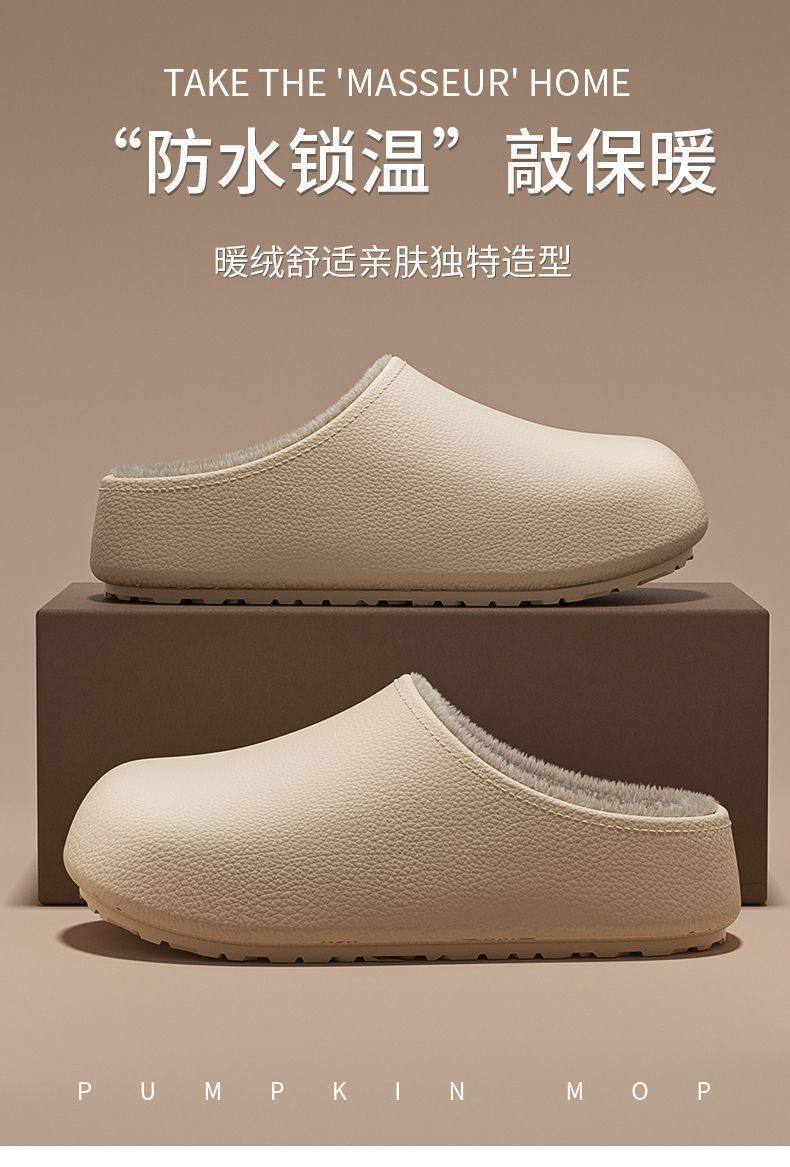 Thick-Soled Waterproof and Non-Slip Cotton Slippers for Women at Home and Outside 2025 Winter New Style Fleece-Lined and Thickeneded Simple Cotton Slippers for Women