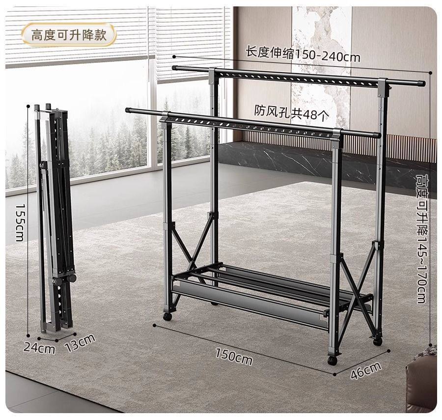 Floor-Standing Balcony Folding Clothes Drying Rack for Home Indoor and Outdoor Use, Retractable Clothes Hanger, Quilt Drying Rack, Clothes Drying Rod