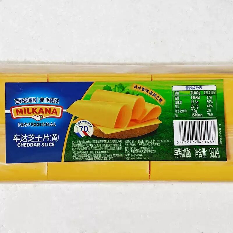 Baijifu Bairui Cheese Cheddar Yellow Cheese Slices 960g Cheese Cheese Slices Burger Baking Ingredients Large Packaging Commercial