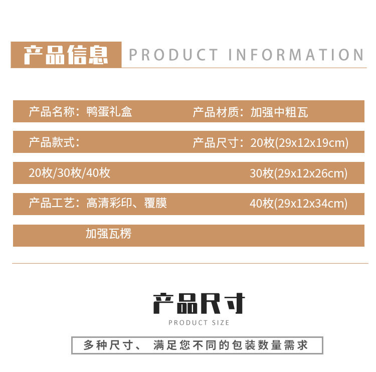 | Specifications and models | White duck egg packaging box of 20 pieces,White duck egg packaging box 20 pieces + egg tray,White duck egg packaging box 30 pieces,White duck egg packaging box 30 pieces + egg tray,White duck egg packaging box 40 pieces,White duck egg packaging box 40 pieces + egg tray |