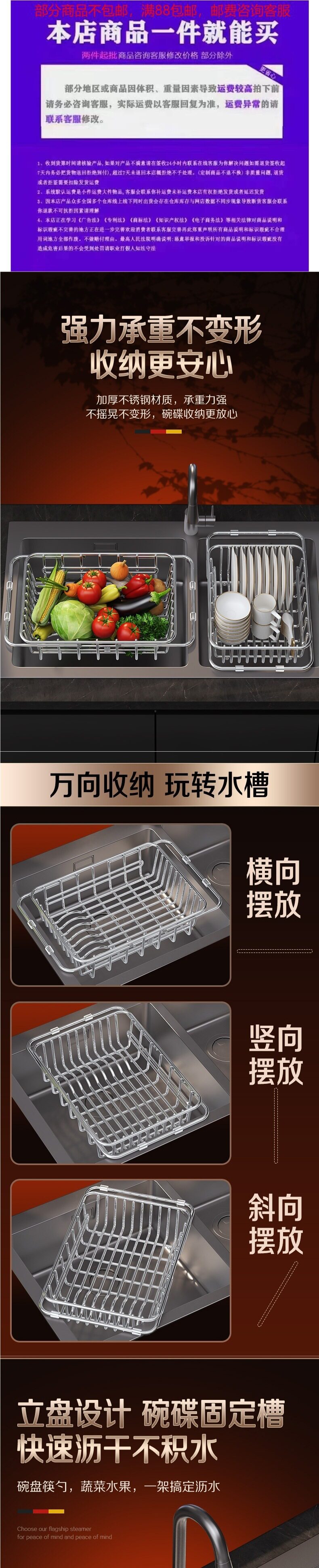 Kitchen 316L Stainless Steel Water Drain Rack Storage Rack Sink Drain Dish Filter Basket Fruit and Vegetable Drain Basket