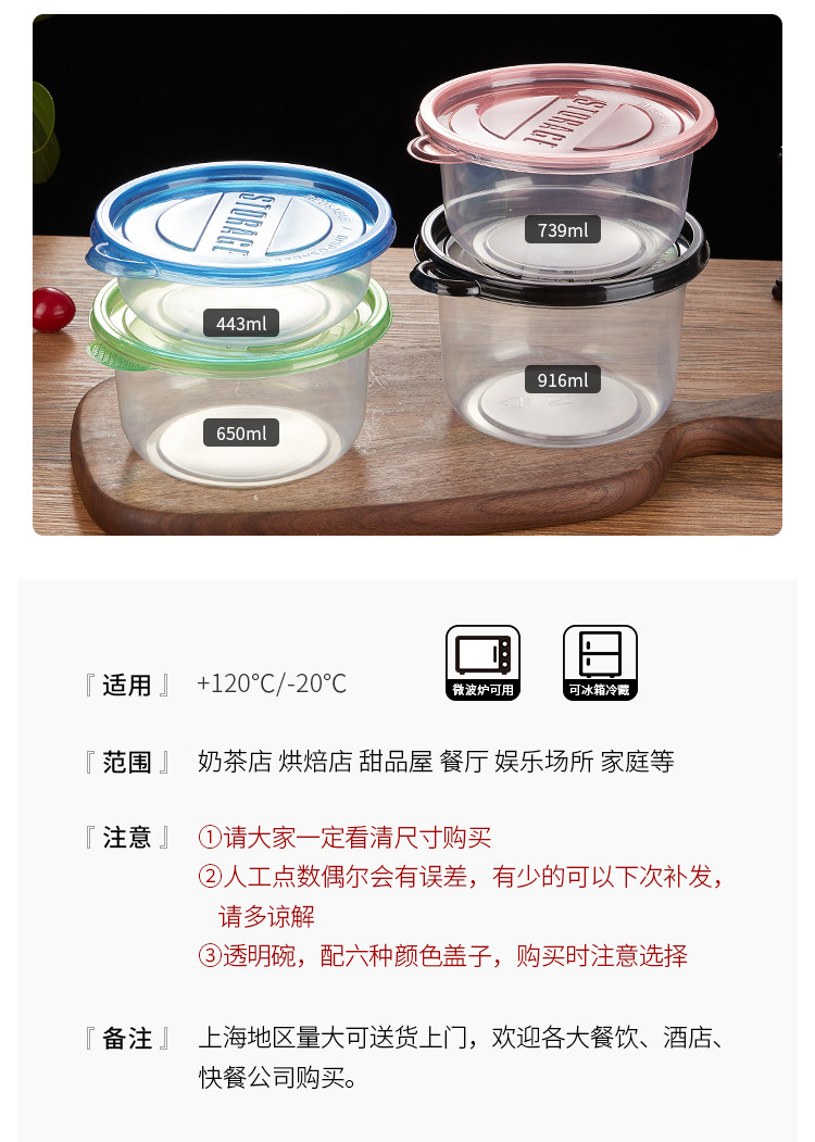 50 Sets of Wholesale Round Packaging Bowls, Disposable Lunch Boxes, Bento Boxes, Fruit Salad Boxes, Dessert Lunch Boxes, and Preservation Boxes