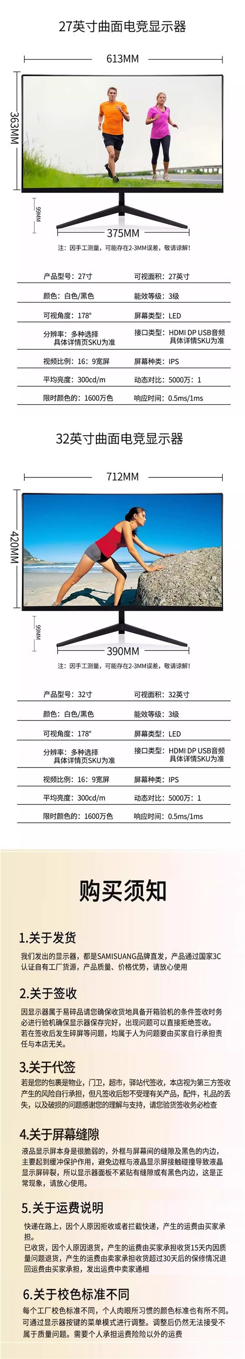 | Size | 24inch facing black 1k-75hz impulse office,★ ★ Brand new a-standard screen/three-year warranty/replacement within one year/sf express free shipping ★ ★,★ ★ The following is the 24inch borderless series ★ ★,24inch face to black 1k-100hz office home,24inch face white1k-100hz office for home,24inch curved black 1k-100hz office home,24inch curved white 1k-100hz office home,24inch face to face with black 1k-165hz hot e-sports,24inch curved black 1k-165hz hot e-sports,24inch curved white 1k-165hz hot e-sports,24inch face to face with black 1k-180hz e-sports king kong,24inch curved black 1k-180hz e-sports king kong,24inch curved white 1k-180hz e-sports king kong,24inch face-to-face black 2k-100hz art design,24inch face to face with the black 2k-165hz gaming flagship,24inch face to face with the black 2k-180hz gaming flagship,24.5inch face to face with black 1k-100hz new products,★ ★ The following is the 27inch borderless series ★ ★,27inch facing black 1k-75hz impulse office,27inch facing white1k-75hz impulse office,27inch curved black 1k-75hz impulse office,27inch curved white 1k-75hz impulse office,27inch face to face black 1k-100hz home office,27inch face to white1k-100hzhome office,27inch curved black 1k-100hz home office,27inch curved white 1k-100hz home office,27inch face to face with black 1k-165hz hot e-sports,27inch curved black 1k-165hz hot e-sports,27inch curved white 1k-165hz hot e-sports,27inch face to face with black 1k-180hz e-sports king kong,27inch curved black 1k-180hz e-sports king kong,27inch curved white 1k-180hz e-sports king kong,27inch face to face black 1k-200hz e-sports editing,27inch curved black 1k-200hz e-sports clip,27inch curved white 1k-200hz e-sports clip,27inch face to face black 1k-240hz steel cannon e-sports,27inch curved black 1k-240hz steel cannon e-sports,27inch curved white 1k-240hz steel cannon e-sports,27inch face to face with black 1k-280hz e-sports professional,27inch curved black 1k-280hz e-sports professional,27inch curved white 1k-280hz e-sports professional,27inch face to face black 2k-75hz professional office,27inch face white2k-75hz professional office,27inch facing black 2k-100hz editing office,27inch face to white2k-100hz editing office,27inch face the black 2k-144hz e-sports game,27inch curved black 2k-144hz e-sports game,27inch curved white 2k-144hz e-sports game,27inch face the mainstream of black 2k-165hz e-sports,27inch curved black 2k-165hz gaming mainstream,27inch curved white 2k-165hz gaming mainstream,27inch face to face with the black 2k-180hz e-sports overlord,27inch curved black 2k-180hz e-sports king,27inch curved white 2k-180hz e-sports king,27inch face to face with black 2k-240hz e-sports super god,27inch face to face with black 2k-300hz e-sports super god,27inch face to face with the black 4k-60hz e-sports flagship,★ ★ The following is the 32inch borderless series ★ ★,32inch curved black 1k-75hz impulse office,32inch curved white 1k-75hz impulse office,32inch curved black 1k-180hz e-sports king kong,32inch curved black 1k-200hz impulse office,32inch curved black 1k-240hz e-sports steel cannon,32inch curved white 1k-240hz gaming steel gun,32inch curved black 1k-280hz e-sports professional,32inch curved white 1k-280hz e-sports professional,32inch curved black 2k-165hz gaming mainstream,32inch curved white 2k-165hz gaming mainstream,32inch curved black 2k-180hz e-sports king,32inch curved white 2k-180hz e-sports king,32inch curved black 2k-240hz e-sports super god,32inch curved black 2k-260hz e-sports super god,32inch face to face with the black 4k-60hz e-sports flagship,★ ★ The following are must-buy items when entering the store - built-in audio models ★ ★,24inch face black 1k-100hz built-in speaker,24inch face black 1k-144hz built-in speaker,24inch face black 2k-144hz built-in speaker,27inch face black 1k-100hz built-in speaker,27inch face black 1k-144hz built-in speaker,27inch face black 2k-100hz built-in speaker |