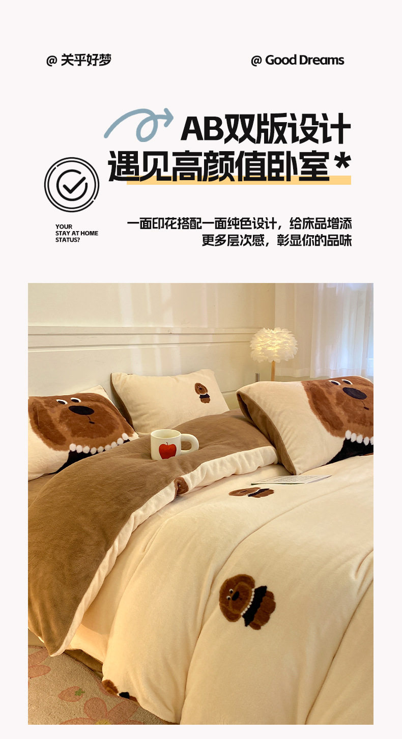 Winter Milk Velvet Four-Piece Set Thickened Encrypted Dormitory Three-Piece Set Maternal and Infant Grade Milk Velvet Bed Sheetss and Quilt Cover Velvet Set