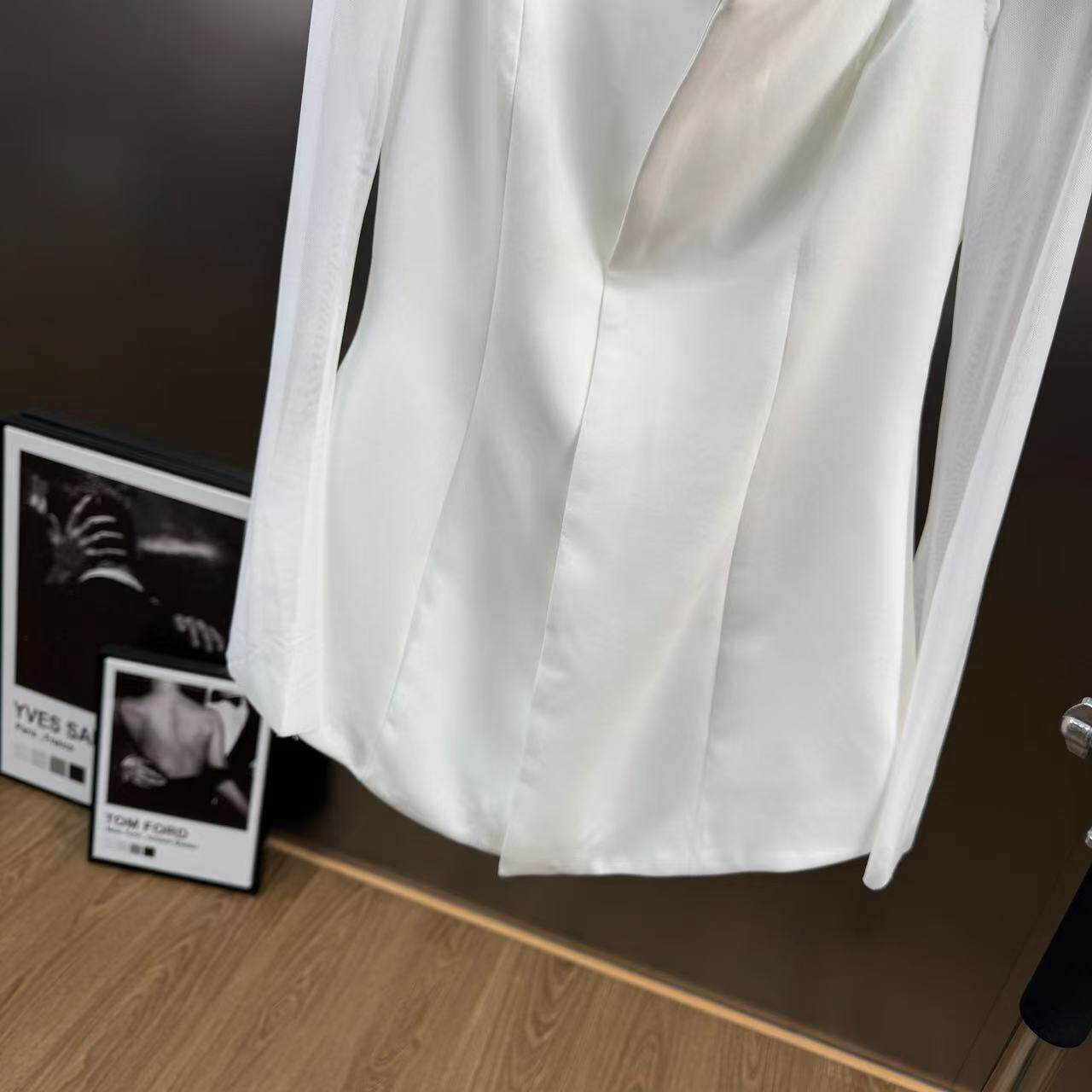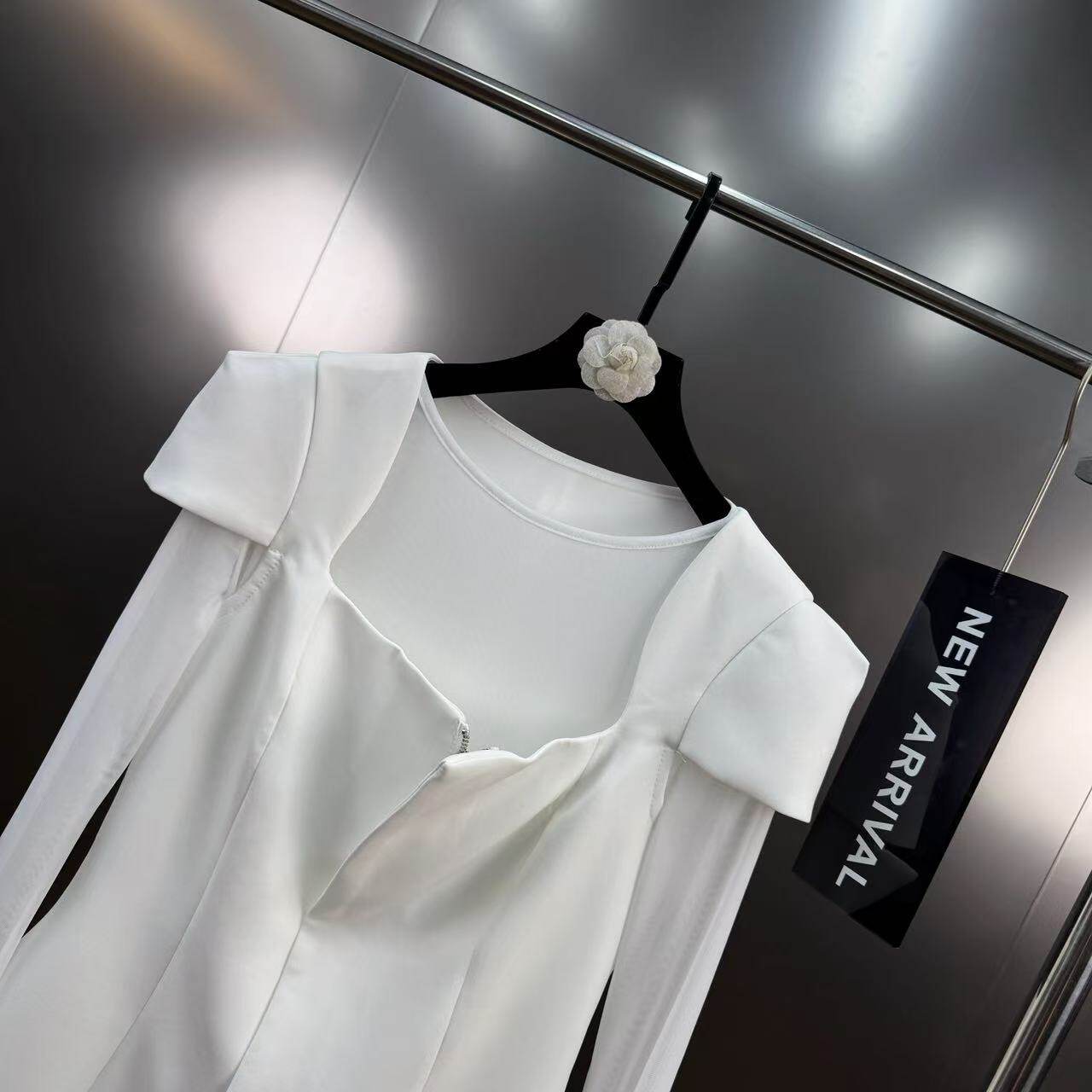 2025 Winter Square Neck Waist Short-Sleeved Top + Mesh Blouse and Long Skirt Two-Piece Elegant Style