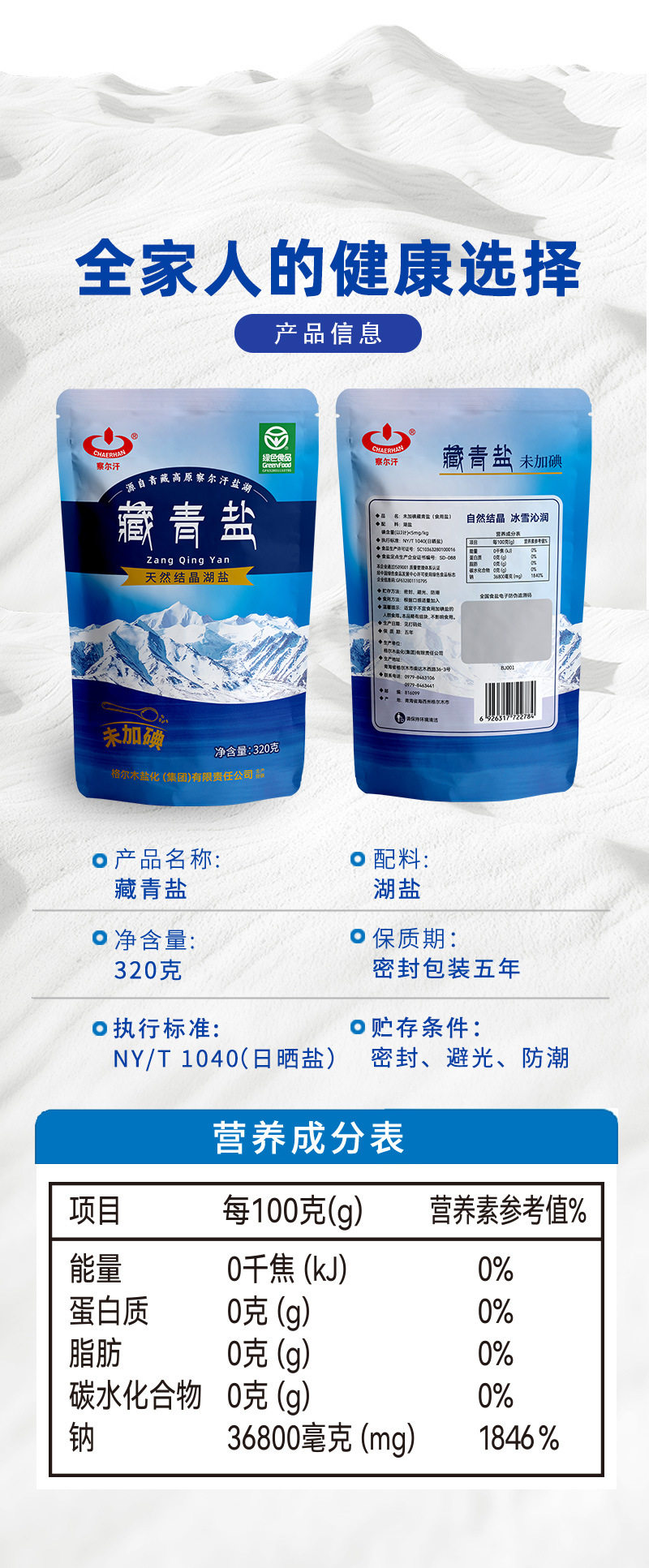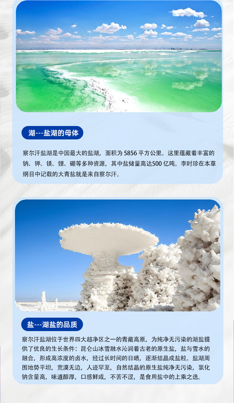 | Packaging specifications | [6 bags] Xizang blue salt 320g*3 bags + free 320g*3 bags,[12 bags] Xizang blue salt 320g*6 bags + free 320g*6 bags,[32 bags] Xizang blue salt 320g*16 bags + free 320g*16 bags,[60 bags] Xizang blue salt 320g*30 bags + free 320g*30 bags |