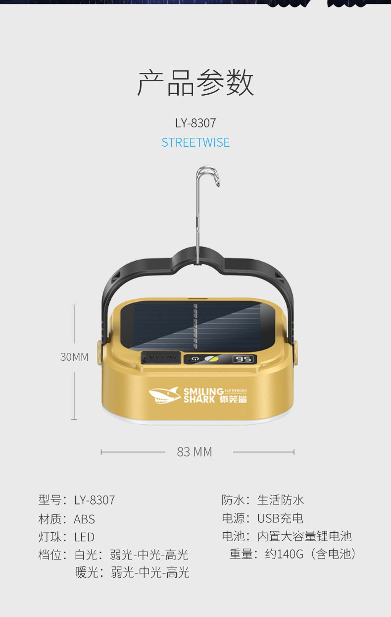 Color Ly-8307 warm white dual light camping lamp-khaki [built-in 18650 battery 2400mah],Ly-8307 warm white dual light camping lamp-green [built-in 18650 battery 2400mah],Ly-8241 coffee [yellow and white light; solar rechargeable]