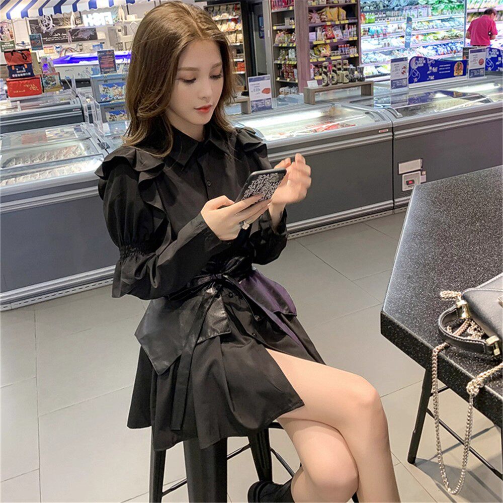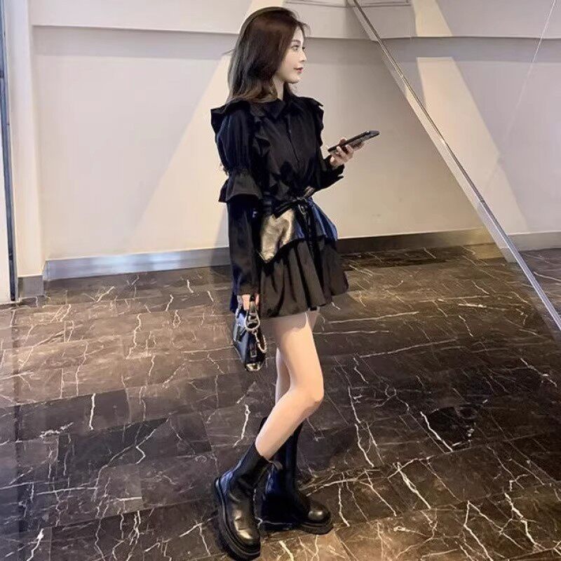 Autumn New Fashionable Age-Reducing Street Dress Suit Women's Design Shirt Waist Skirt Elegant Two-Piece Set