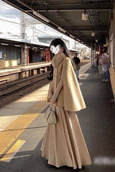 | Color | Oatmeal cloak + fur collar two-piece set,Off-white cloak + fur collar two-piece set,Oatmeal cloak + fur collar + dress three-piece set,Off-white cloak + fur collar + dress three-piece set,Oatmeal color dress single piece,Off-white dress single piece |