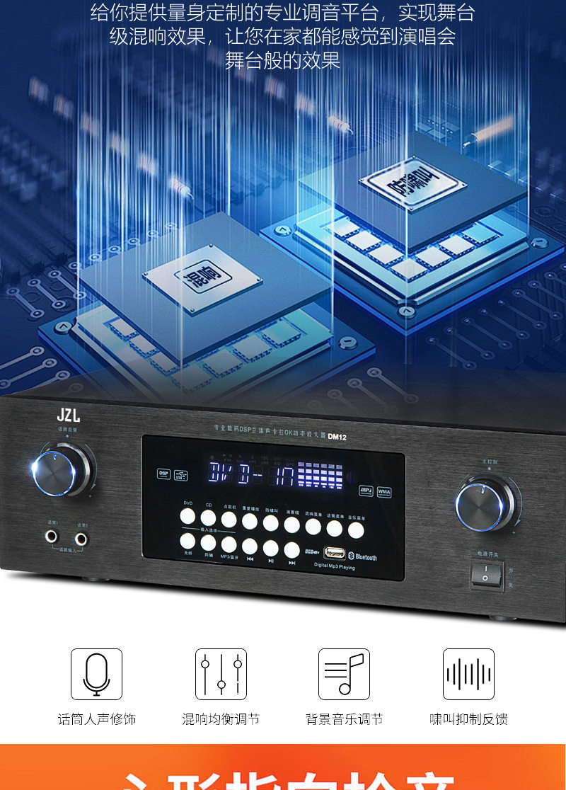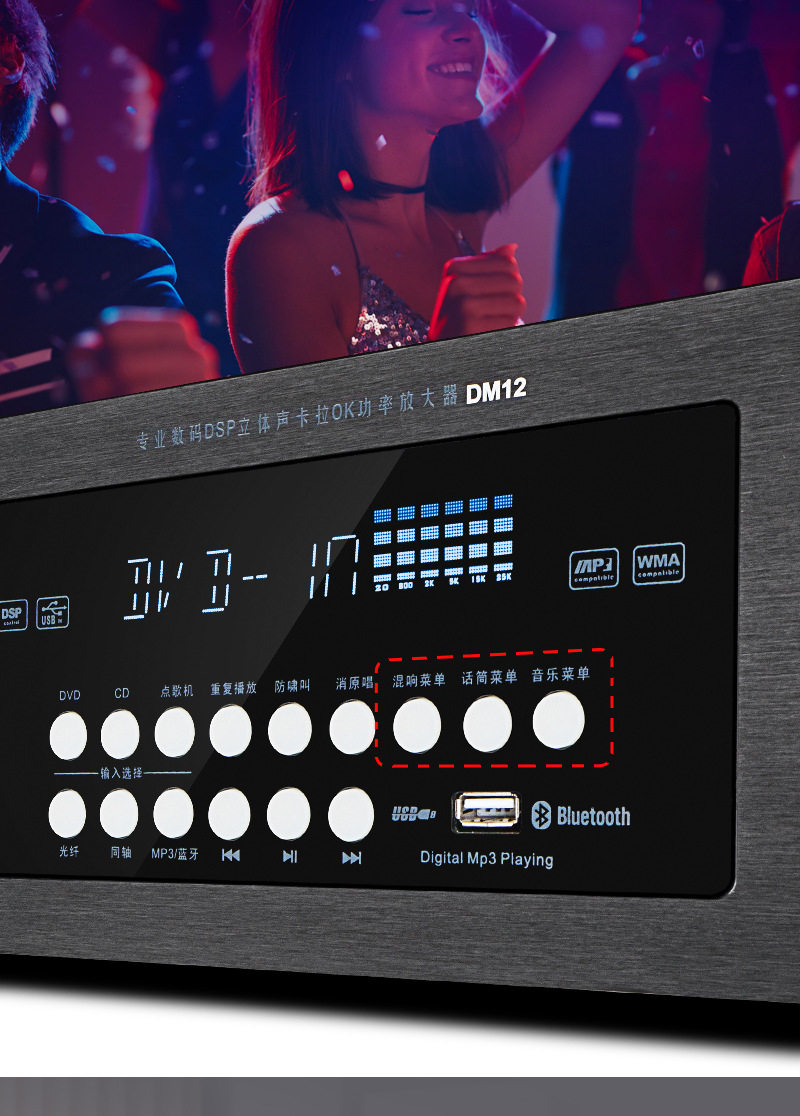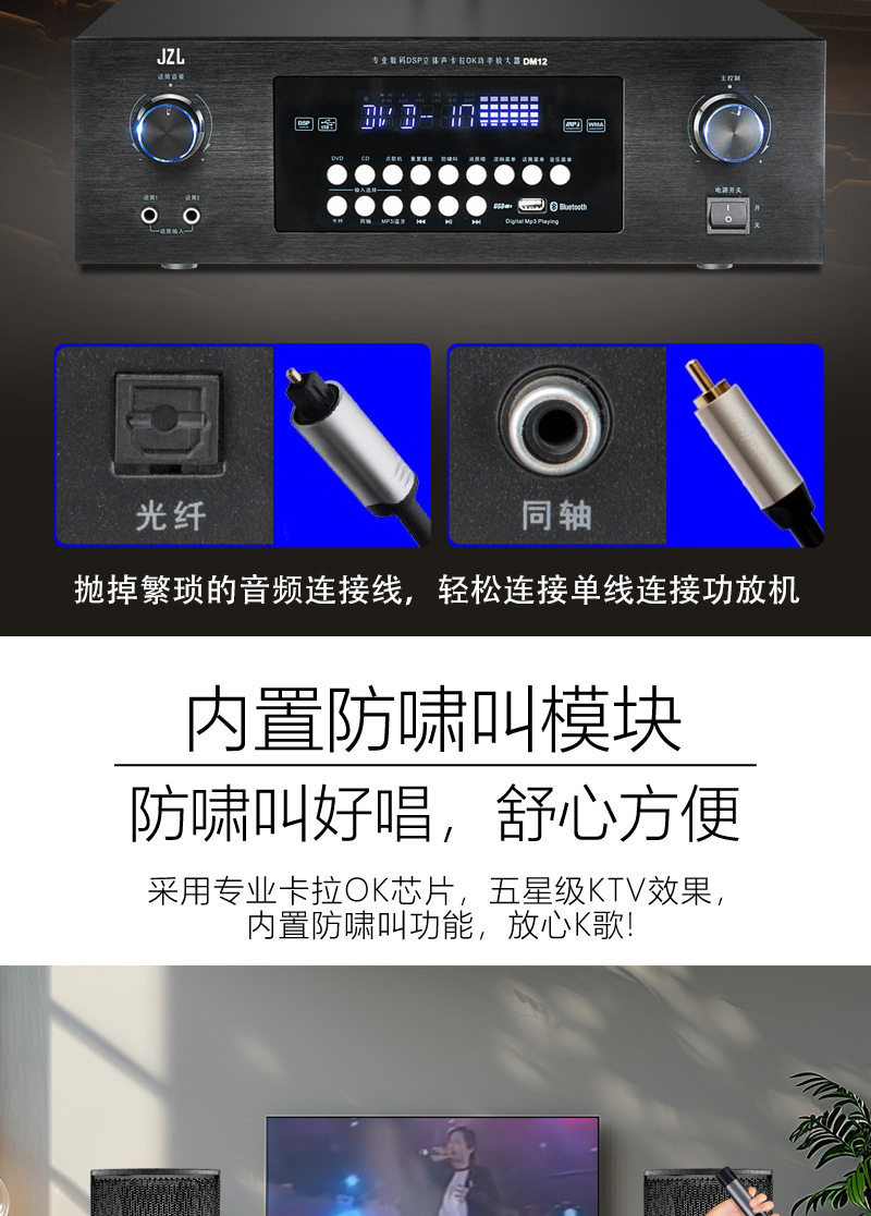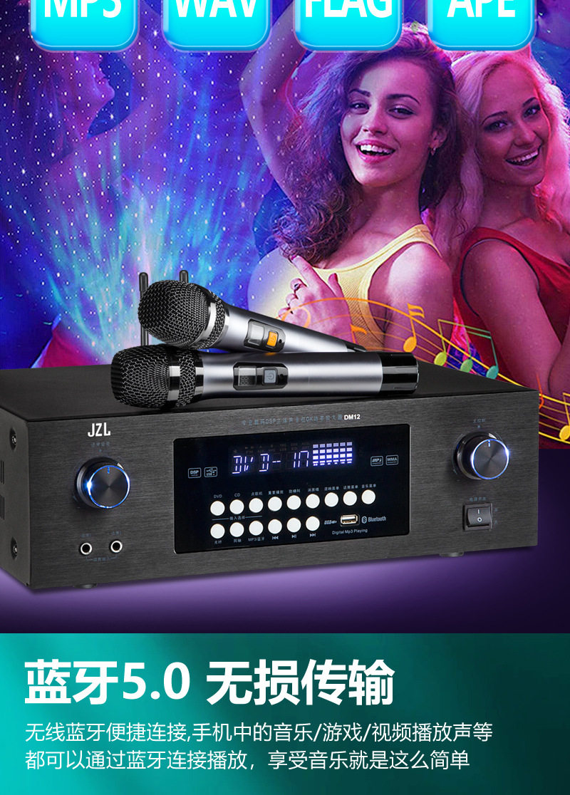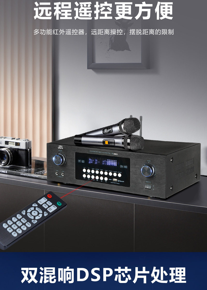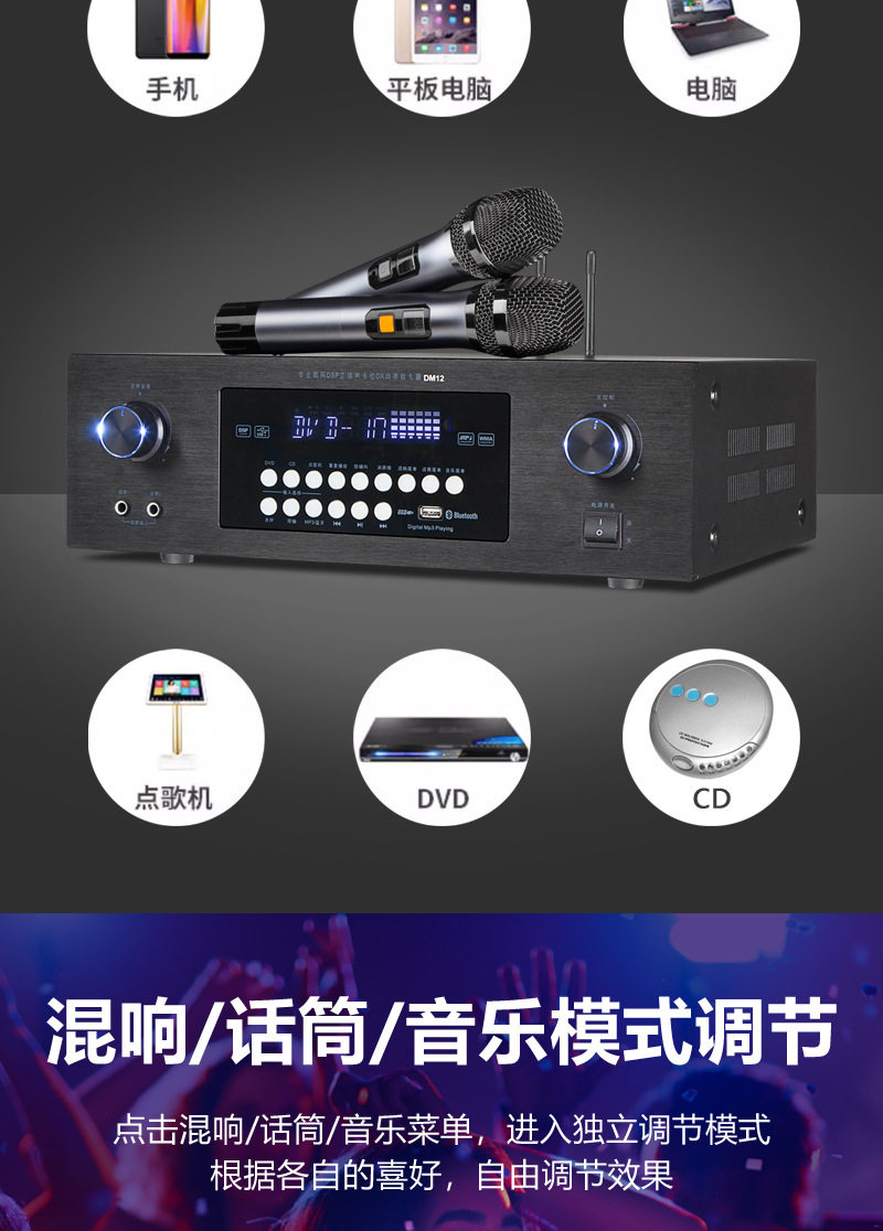 Wholesale 110V220 Voltage Bluetooth Amplifier Ktv Anti-Howling Heavy Bass Home Karaoke Amplifier Taiwan Europe and the United States