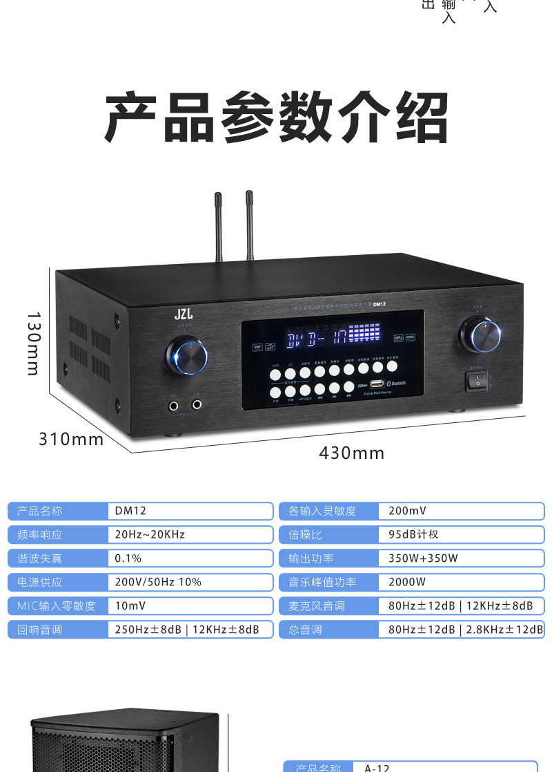 | Product specifications | Dm12 amplifier + microphone,12inch pair of professional speakers,Dm12 amplifier + microphone + 12inch professional audio |