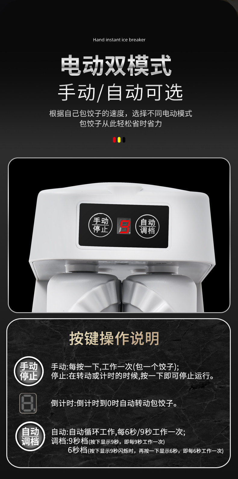 | Specifications | Manual dumpling making tool [one press forming],Electric dumpling-making tool [can make about 1,500 dumplings on a full charge] |