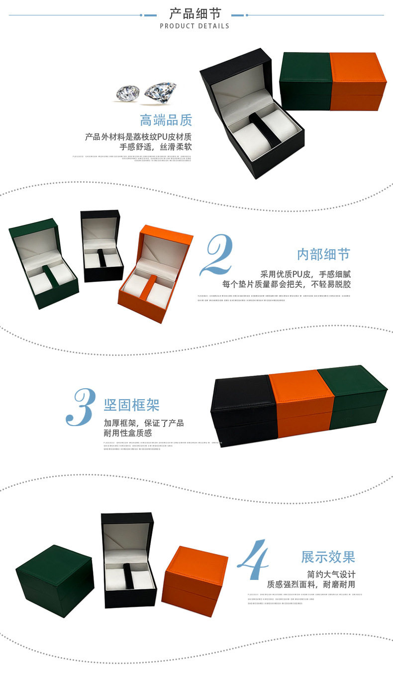 Pu Leather Watch Box Manufacturer Ready-Made Couple Watch Packaging Box Flip Packaging Double Watch Box Full Leather Two-Color Watch Box