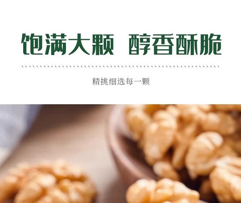 | Packaging specifications | [raw] walnut kernels·250gx1 bag [half a catty],ărawăwalnut kernels·500gx1 bagă0.5kgă,ărawăwalnut kernels·500gx2 bagsă1.0kgă,ărawăwalnut kernels·500gx3 bagsă1.5kgă,ărawăwalnut kernels·500gx1 can,ărawăwalnut kernels·500gx2 cans |