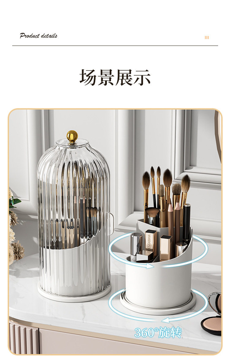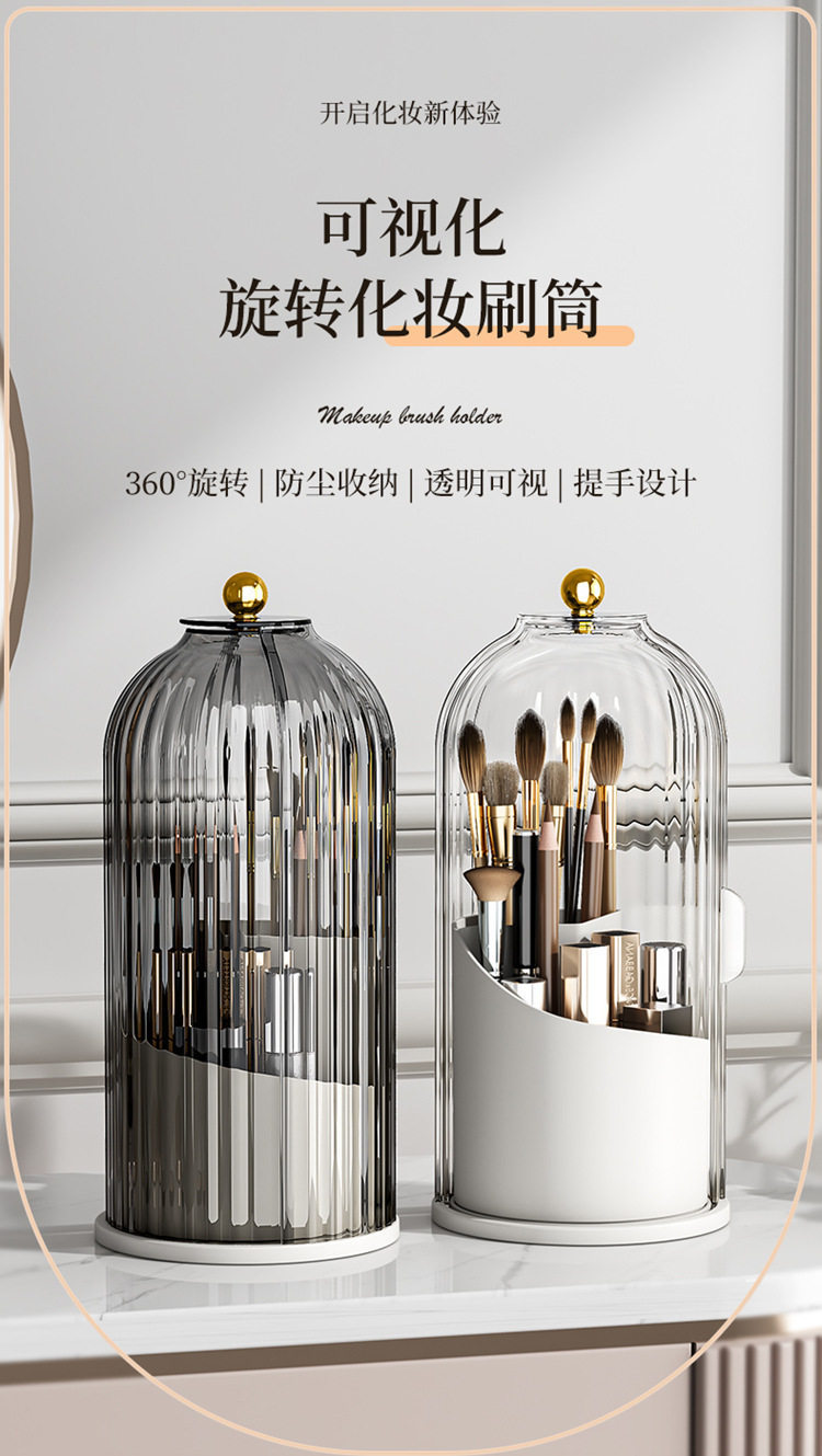 Birdcage Pen Holder Storage Rack Dust-Proof Compartment Desktop Cosmetics Storage Box Rotating Makeup Brush Storage Tube Dressing Table
