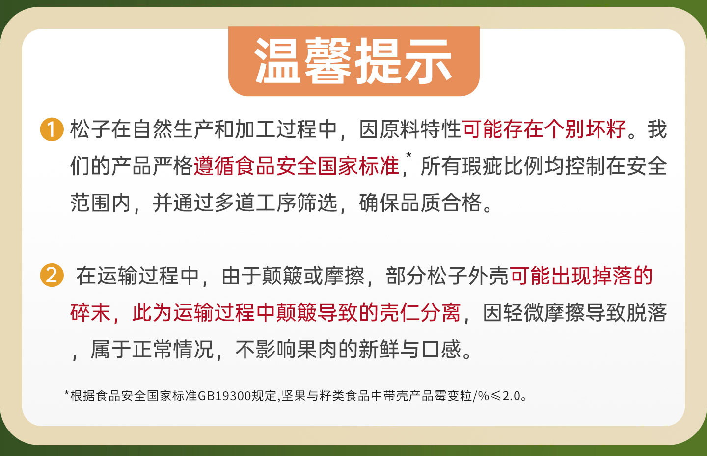 | Taste | [small portable package] 100g*1 bag,Really good quality! [half a pound small package for sharing] 250g*1 bag,[ring-shaped large opening] open pine nuts 500g,[stock up, large quantity and cheap 1.0kg pack] 500g*2 bags,[a+ extra large granules] 1.0kg : net content 500g*2 cans |