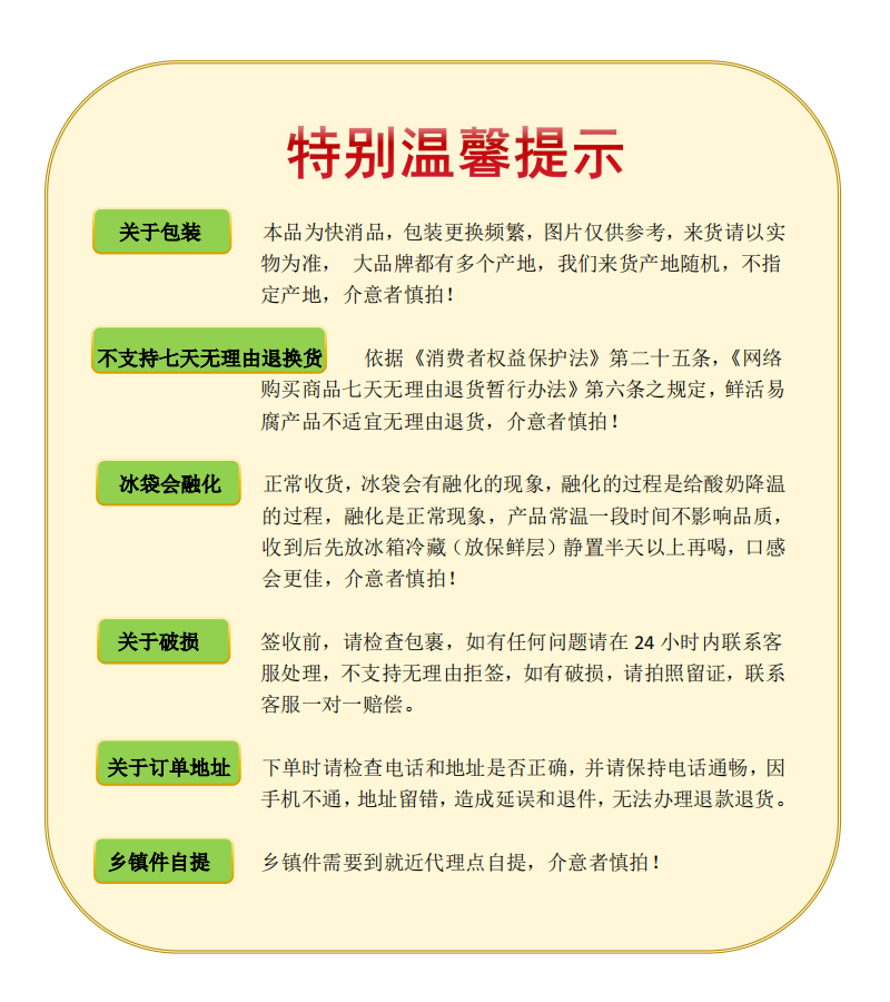| Packaging specifications | 6 bottles of three flavors,6 bottles of oats + yellow peach,6 bottles strawberry flavor,6 bottles of oats + walnuts,10 bottles of three flavors,10 bottles of oats + yellow peach,10 bottles of oatmeal + strawberry,10 bottles of oats + walnuts,15 bottles of three flavors,15 bottles of oats + yellow peach,15 bottles of oats + walnuts,15 bottles strawberry flavor |