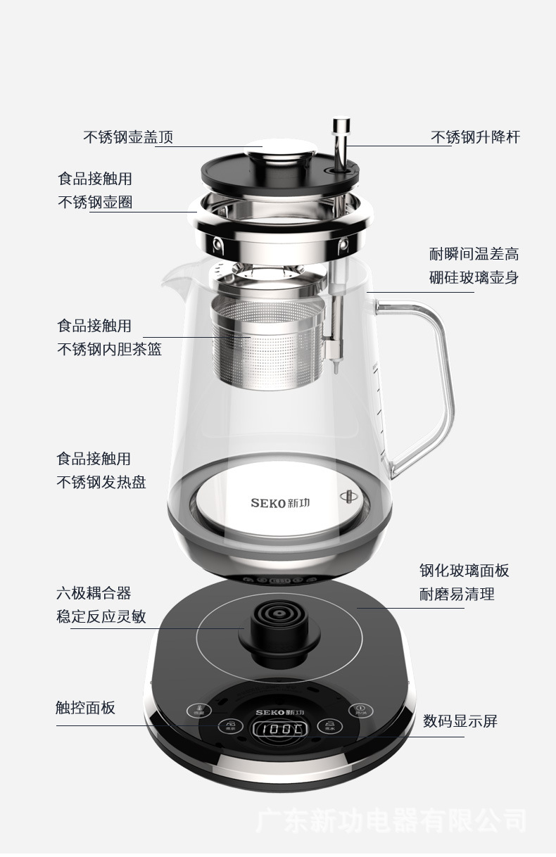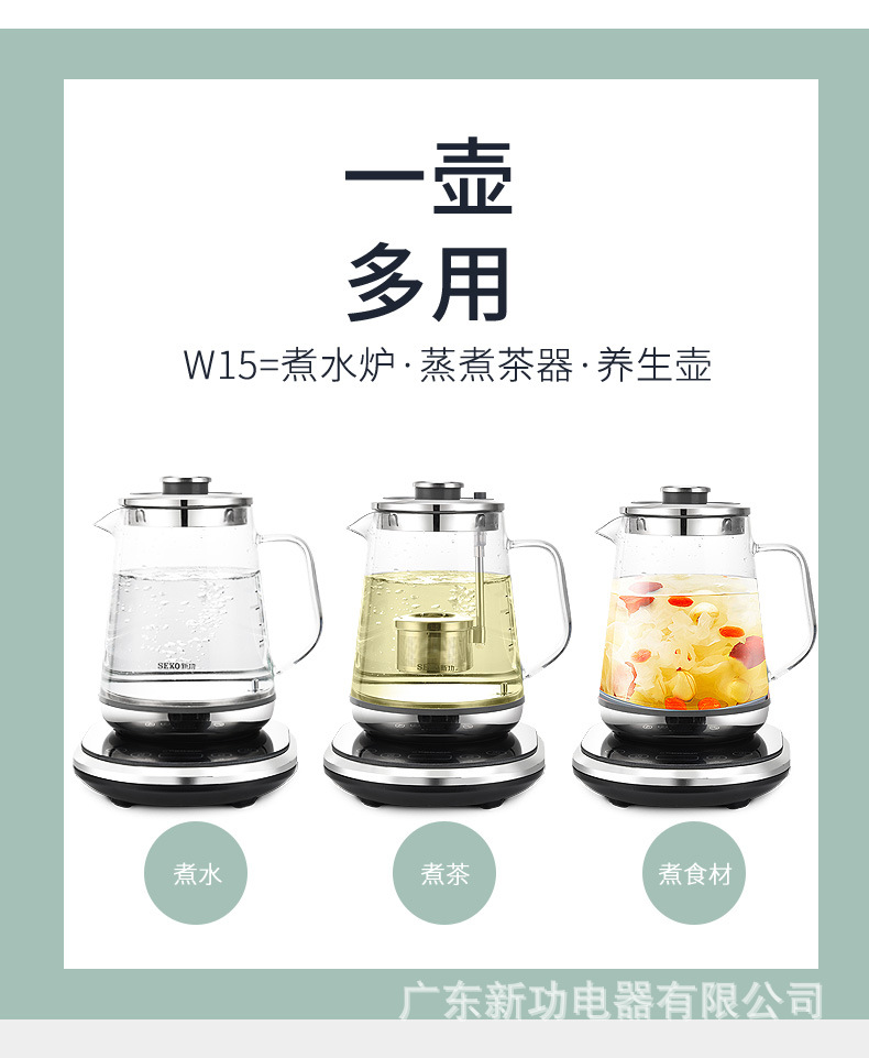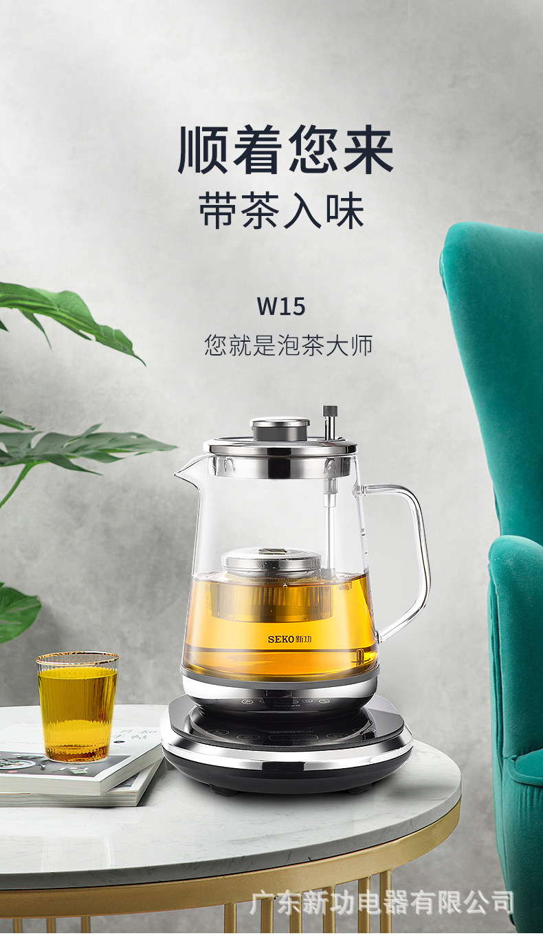 Seko/Xingong W15 Adjustable Tea Basket Tea Maker Household Glass Health Pot Brewing Scented Tea Water Kettle Electric Tea Stove