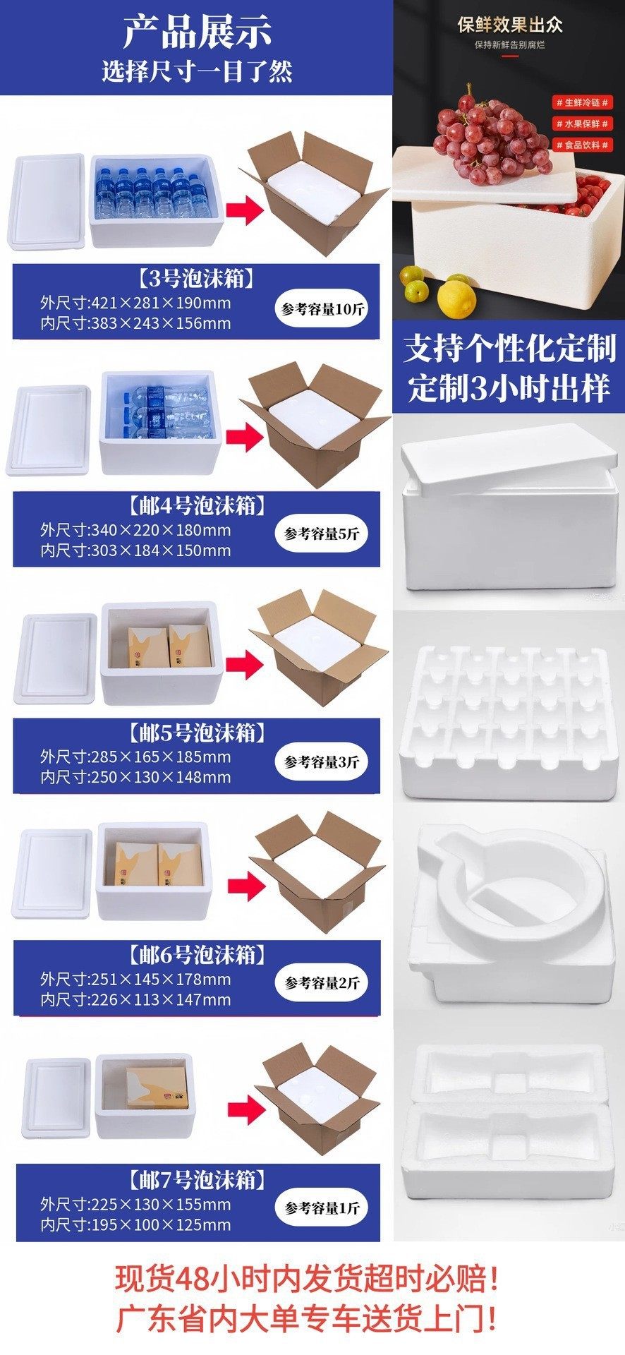 | Specifications and models | Postal box no. 3 (24 pieces); foam box,Postal box no. 4 (27 pieces); foam box,Postal box no. 5 (64 pieces); foam box,Postal large size 5 boxes (36 pieces); foam boxes,Postal box no. 6 (72 pieces); foam box,Postal box no. 7 (80 pieces); foam box,Postal box no. 8 (120 pieces); foam box,Box no. 3 (24 pieces); foam box,Non-standard no. 4 box (28 pieces); foam box,Non-standard no. 5 box (54 pieces); foam box,Non-standard no. 6 box (72 pieces); foam box,Jingbu no. 1 (6 pieces); foam box,Jingbu no. 2 (12 pieces); foam box,Jingbu no. 3 (6 pieces); foam box,Red no. 3 (36 pieces); foam box,Red no. 4 (36 pieces); foam box,Red no. 6 (60 pieces); foam box,20 boxes (12 pieces); foam box,24 boxes (6 pieces); foam box,32 boxes (6 pieces); foam box,45 boxes (4 pieces); foam box,Box a (12 pieces); foam box,A+ box (6 pieces); foam box,Ab (4 pieces); foam box,Bbb (12 pieces); foam box,Positive no. 1 (18 pieces); foam box,Positive b box (12 pieces); foam box,Long b box (12 pieces); foam box,Large 1 size box (18 pieces); foam box,Large square box (4 pieces); foam box,Gift box (15 pieces); foam box,Medium gift box (18 pieces); foam box,Medium box (10 pieces); foam box,Cherry box (18 pieces); foam box,Vegetable boxes (12 pieces); foam boxes,Shanshui tofu flower box (36 pieces); foam box,J8 (12 pieces); foam box,75 boxes (4 pieces); foam box,Postal no. 3 (18 pieces); foam box + carton,Postal no. 4 (27 pieces); foam box + carton,Postal no. 5 (64 pieces); foam box + carton,Postal size 5 (36 pieces); foam box + carton,Postal no. 6 (72 pieces); foam box + carton,No. 2 (12 pieces) (five-layer carton); foam box + carton,No. 3 (24 pieces); foam box + carton,Non-standard no. 4 (28 pieces); foam box + carton,Non-standard no. 5 (54 pieces); foam box + carton,Non-standard no. 6 (72 pieces); foam box + carton,Large 1 size (15 pieces); foam box + carton,Positive b (12 pieces) (five-layer carton); foam box + carton,Long b (12 pieces); foam box + carton,A (12 pieces) (five-layer carton); foam box + carton,A+ (6 pieces) (five-layer carton); foam box + carton,Large square (4 pieces) (five-layer carton); foam box + carton,75 (4 pieces); foam box + carton,1.5kg cherry foam boxes (36 pieces); foam boxes,2.5kg cherry foam boxes (24 pieces); foam boxes |
