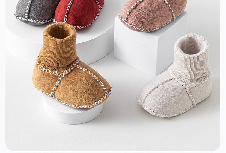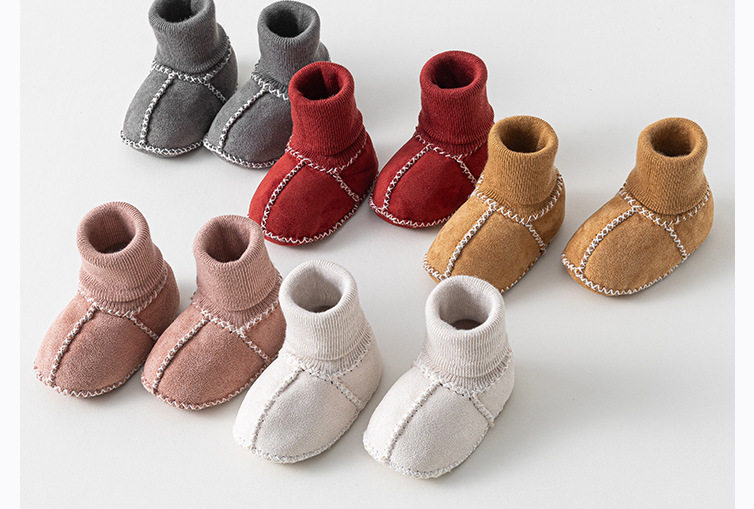 Autumn and Winter Thickeneded Velvet and Warm Toddler Floor Shoes for Boys and Girls 0-3 Years Old, Non-Falling Floor Shoes and Socks Sets
