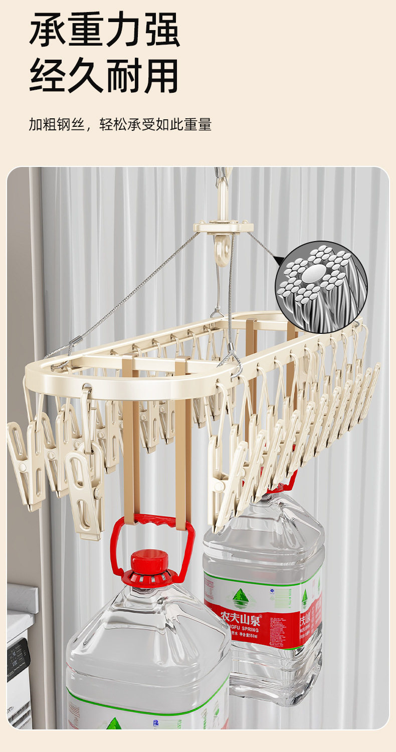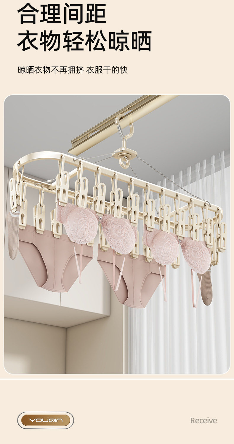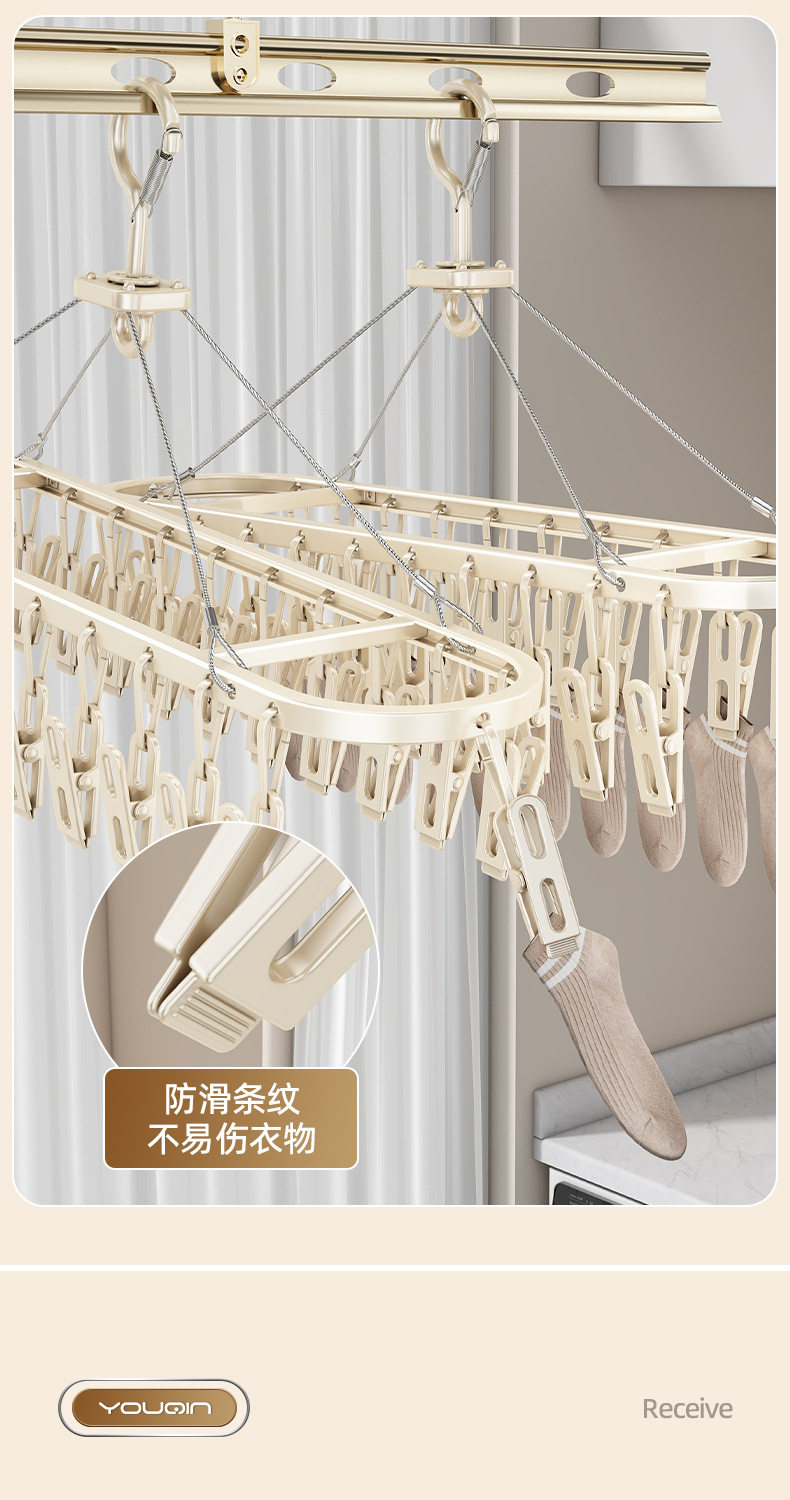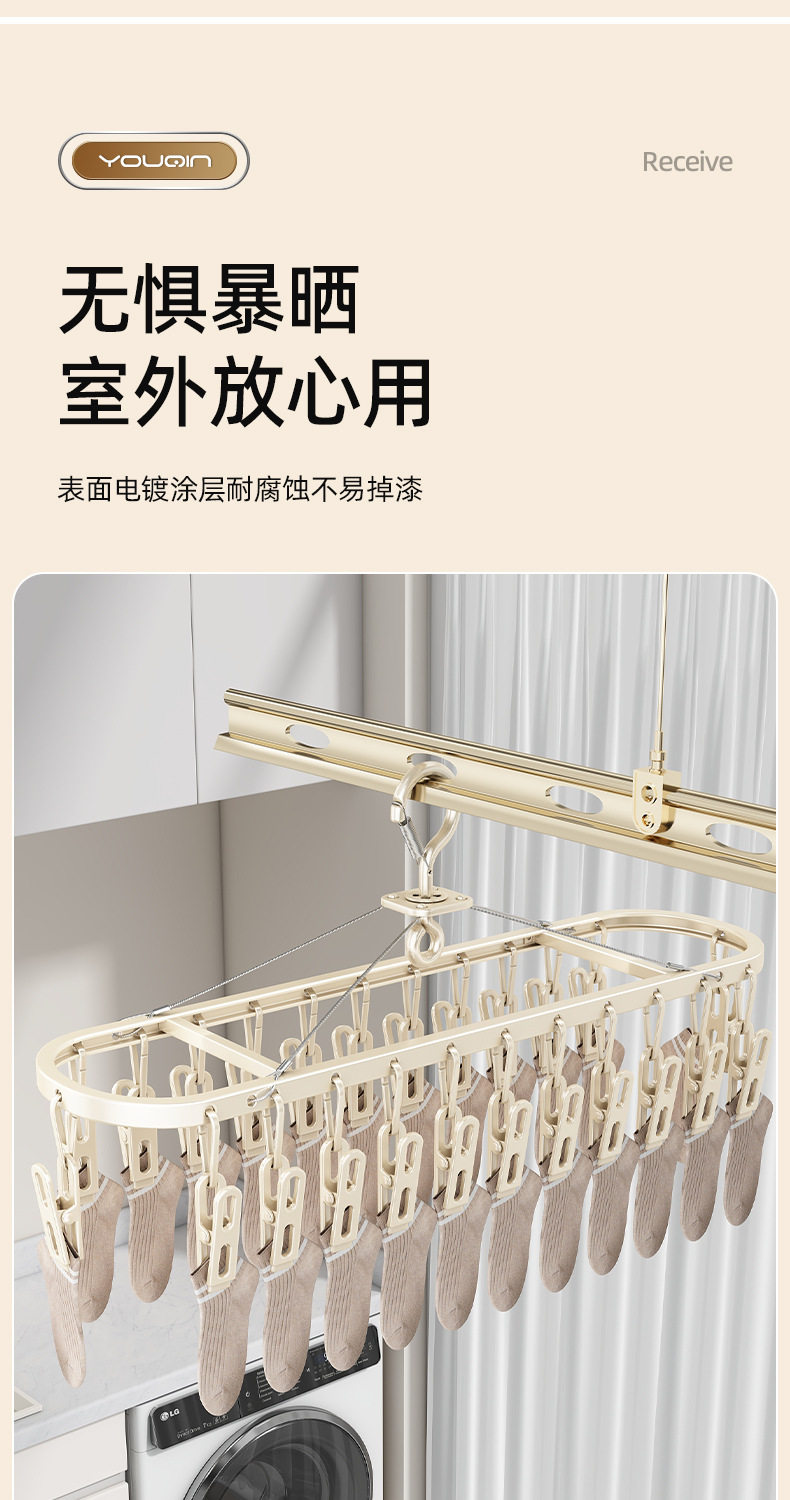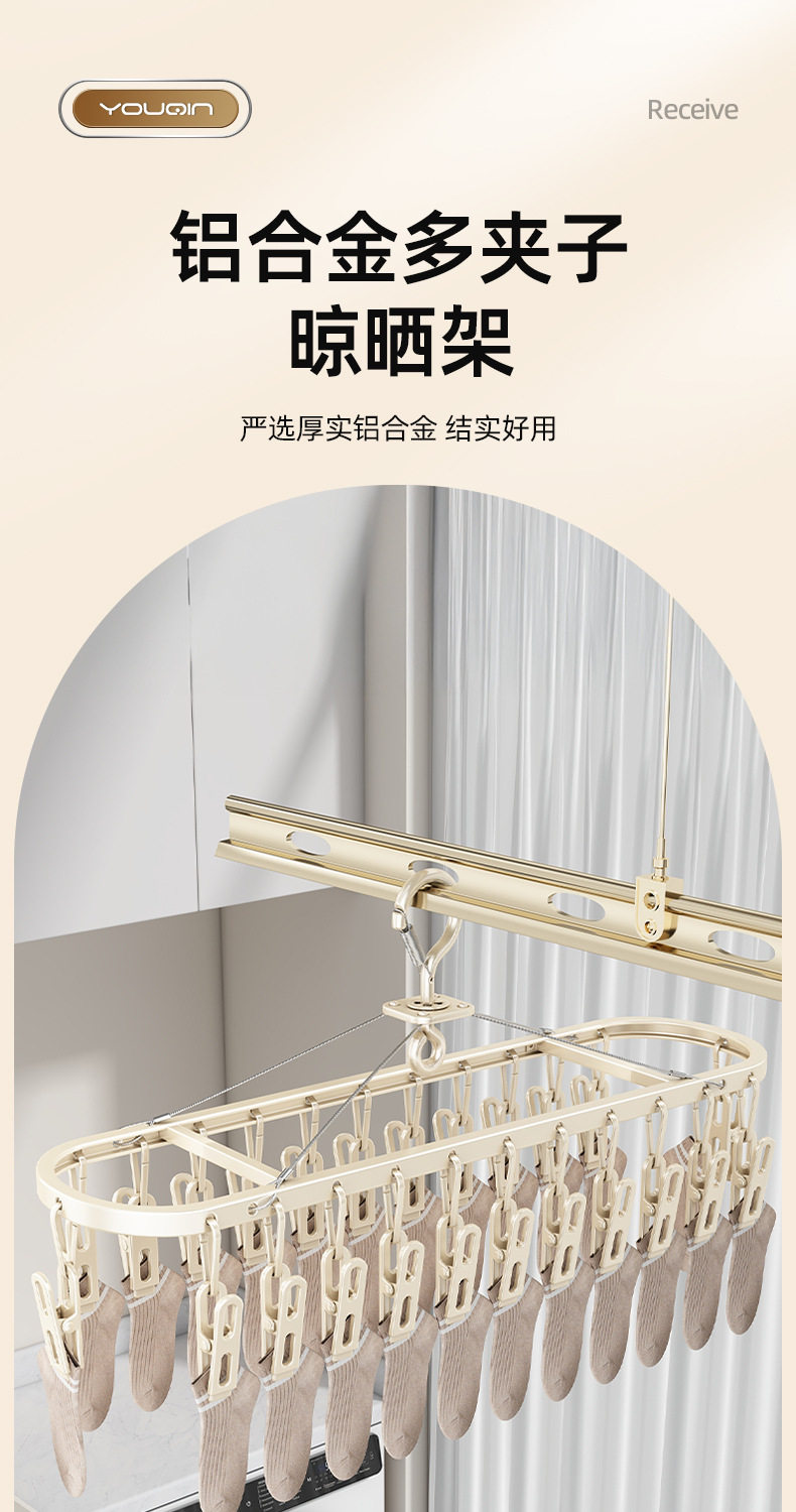 Milky White Aluminum Alloy Sock Drying Rack for Home Balcony, Stainless Steel Drying Rack with Multiple Clips for Underwear and Clothes