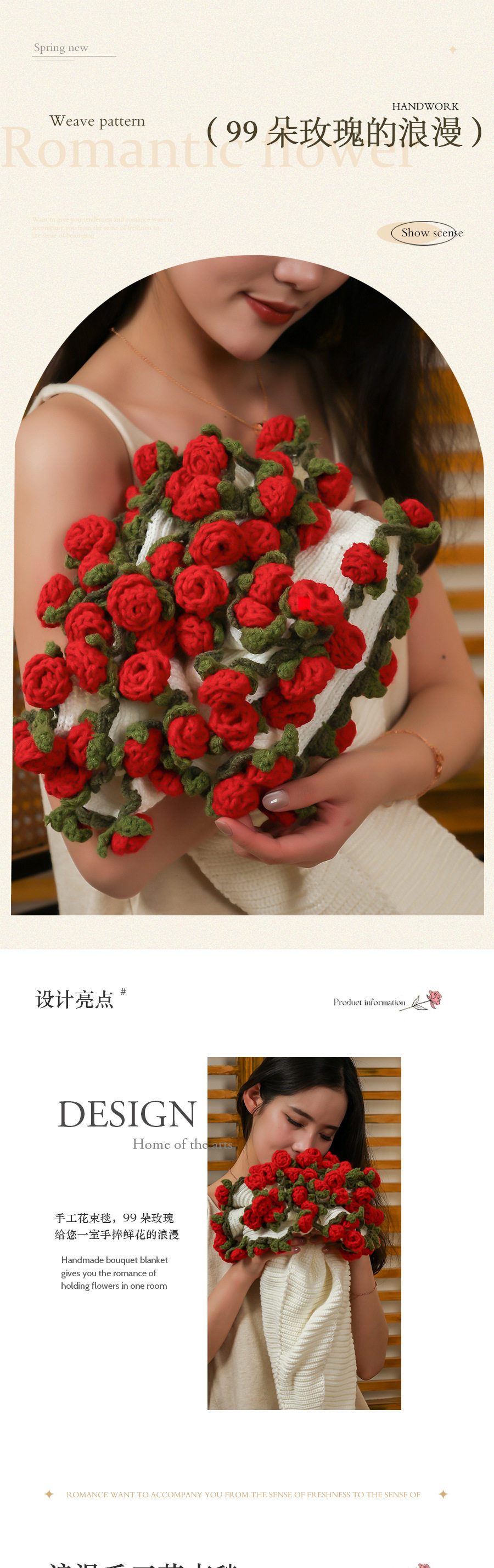 Rose Bouquet Blanket Finished Eternal Flower Nap Blanket Hand-Woven Decorative Blanket Blanket Chinese Valentine's Day Birthday Gift