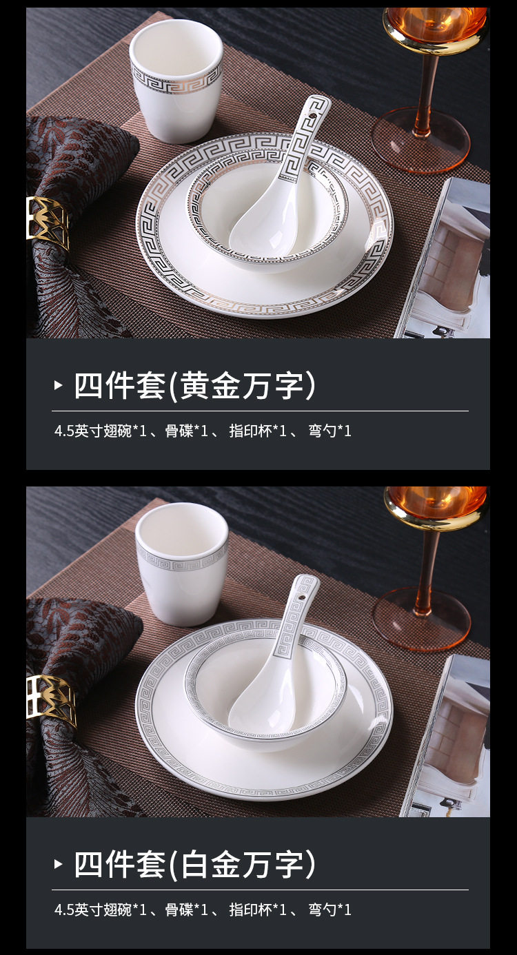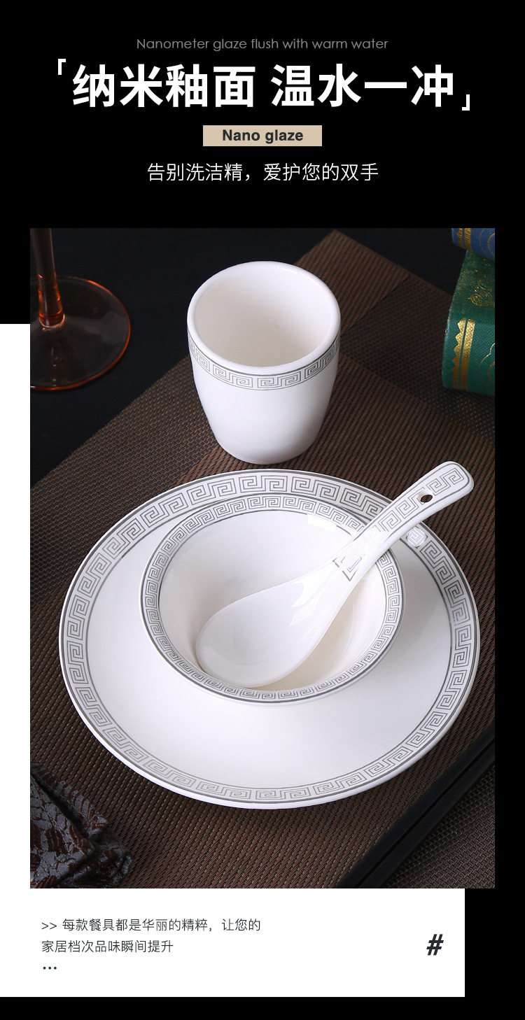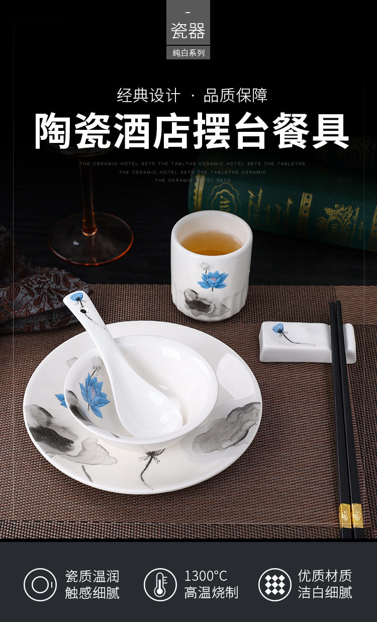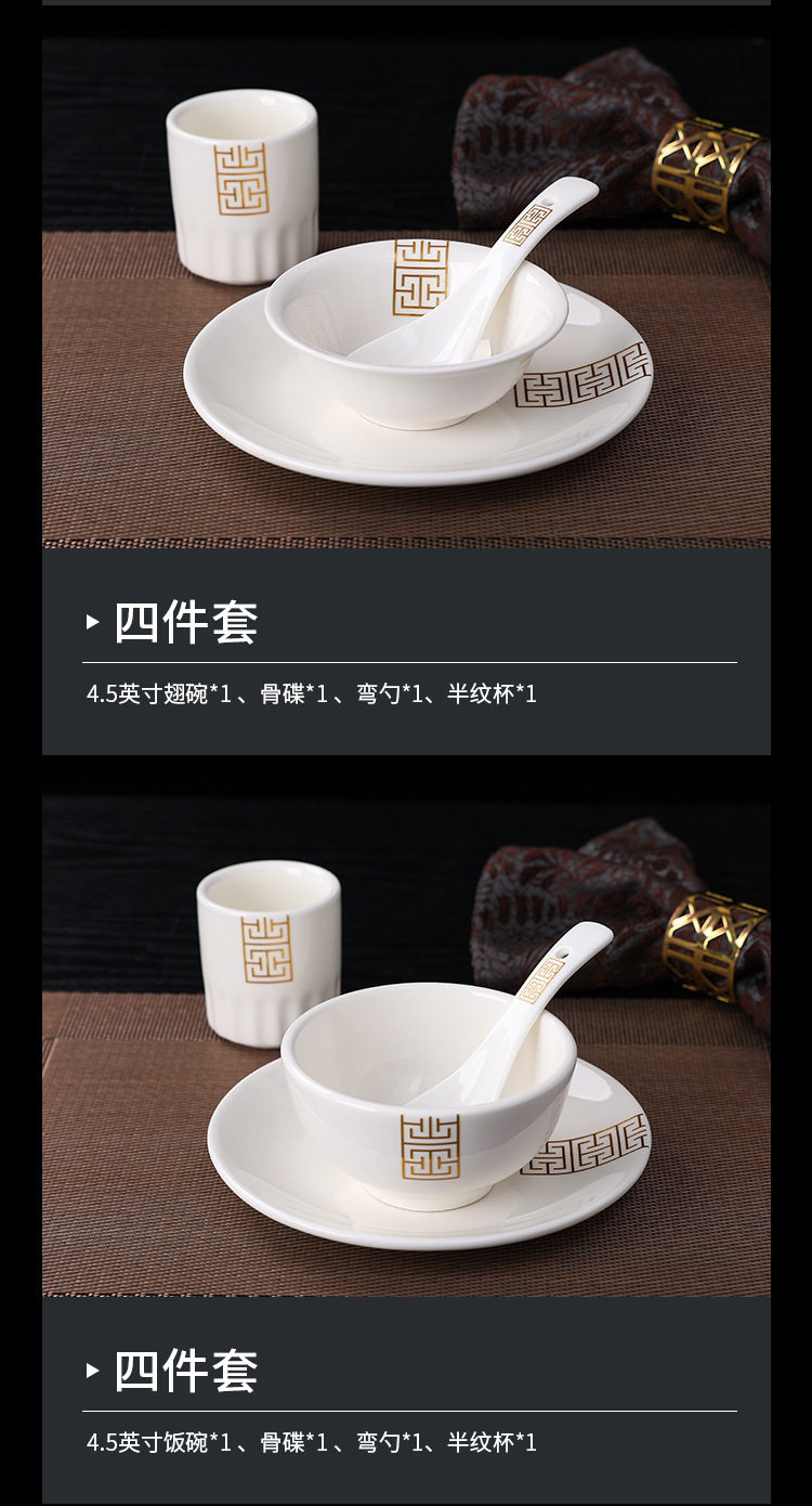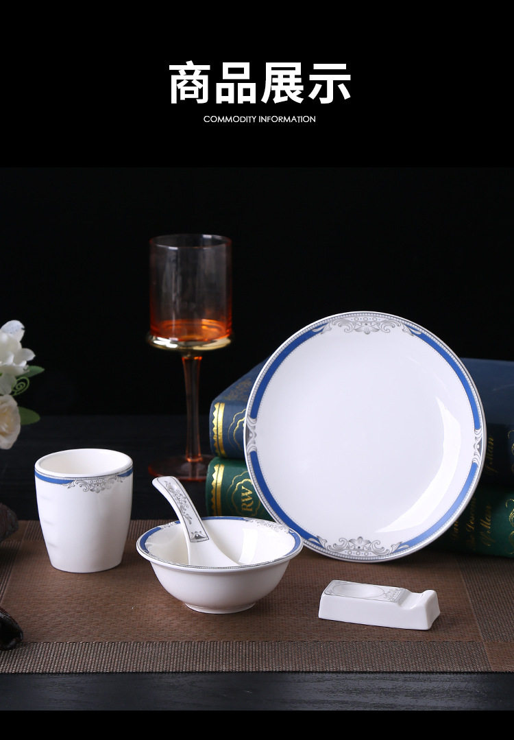 Hotel Tableware Set, Restaurant Chinese Hotel Bowls and Plates Three-Piece and Four-Piece Set, Factory Ceramic Bowls and Plates Five-Piece Set