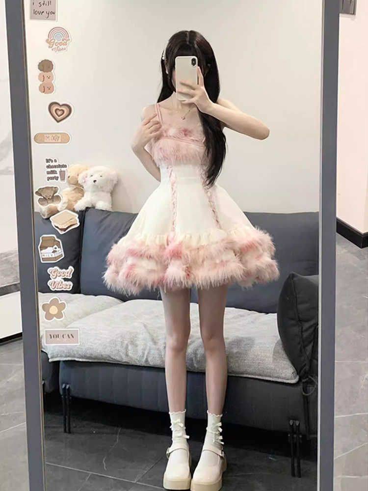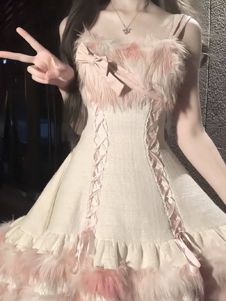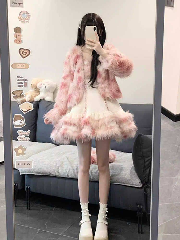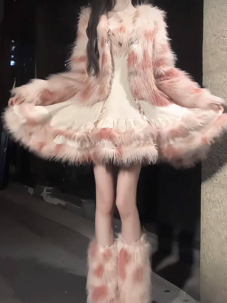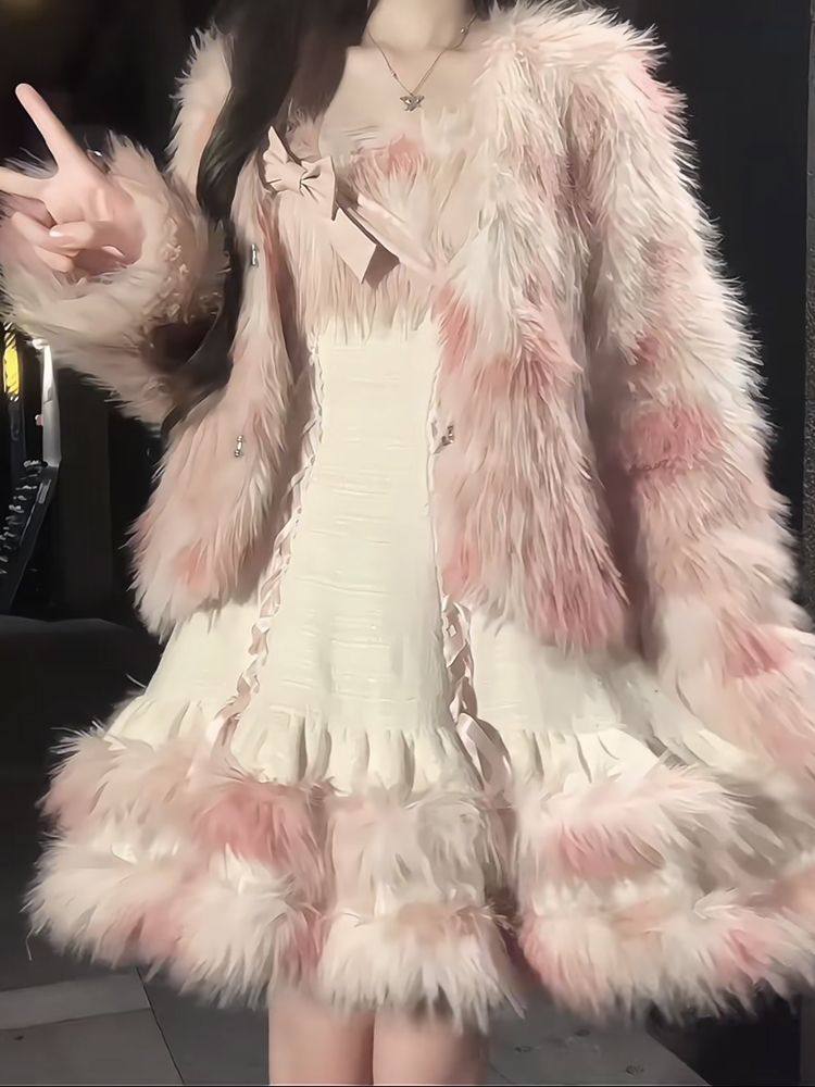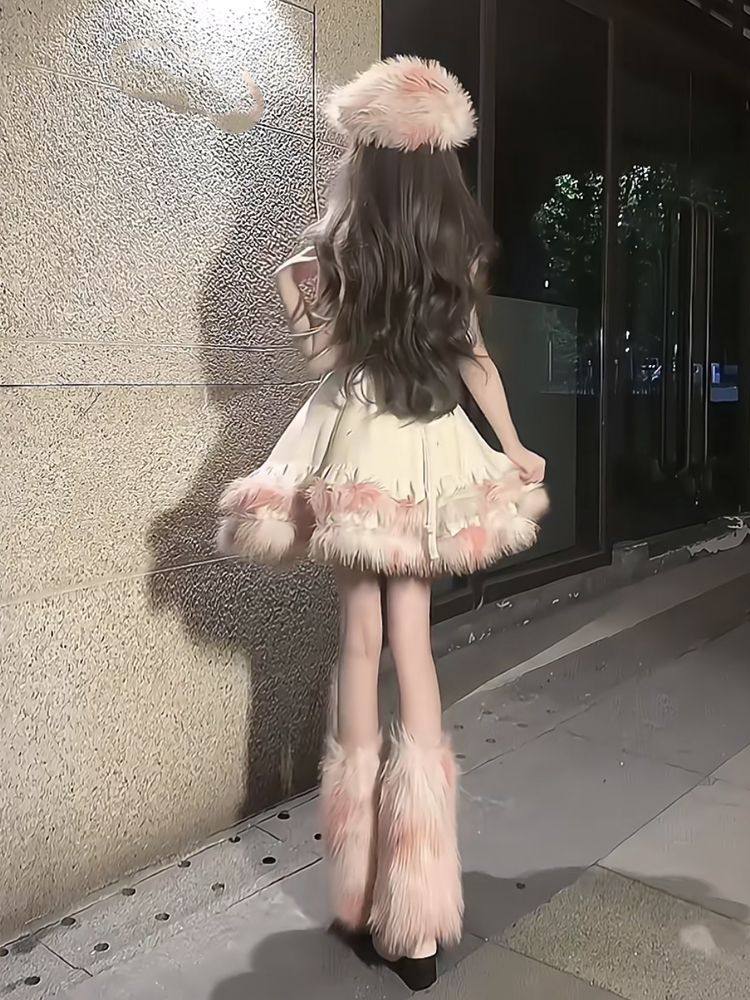 Sweet Girl Versatile Jacket Plush Short Jacket Dress Suit Autumn and Winter Waist Slimming Two-Piece Women's Suit